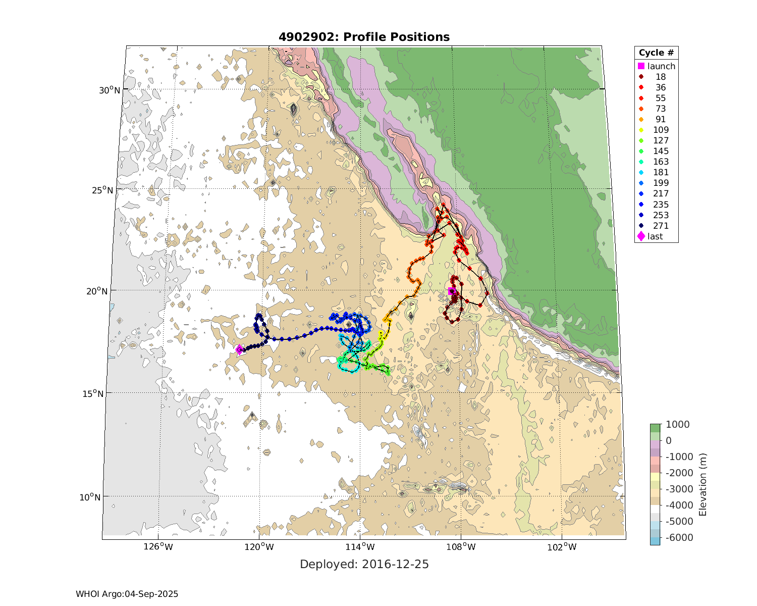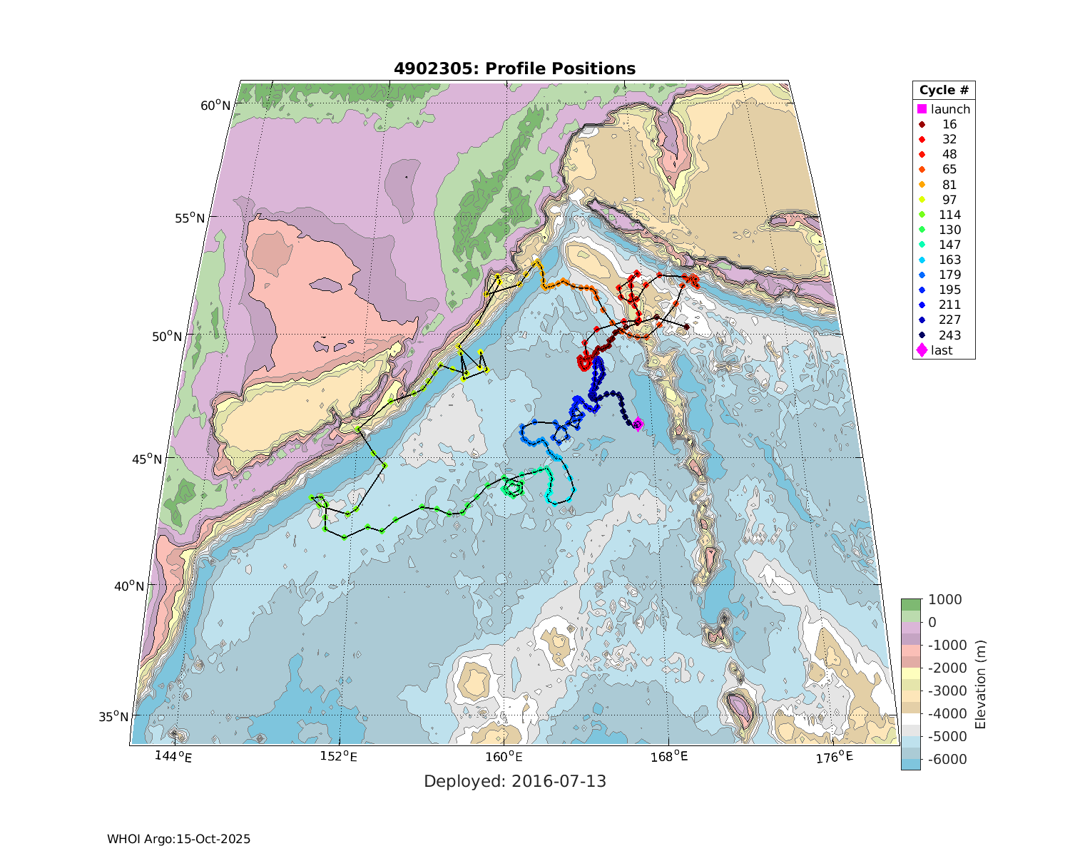 | WMO: #4902902 DAC: aoml PI: GREGORY C. JOHNSON NAVIS_A: #677 SBE41CP: #08194 KISTLER_2900PSIA: #4730952 Altimeter Comparison (IFREMER) EuroArgo Link | ![]() |