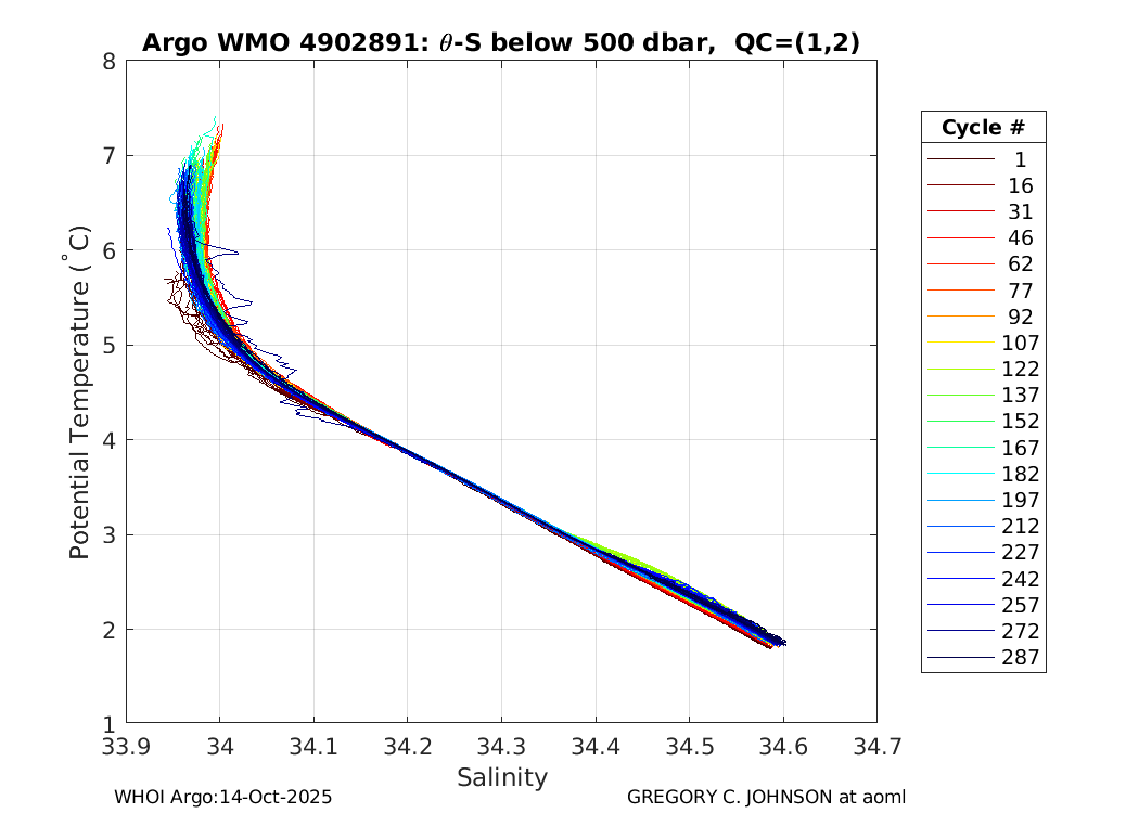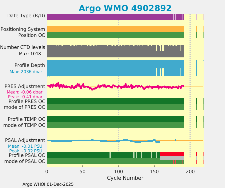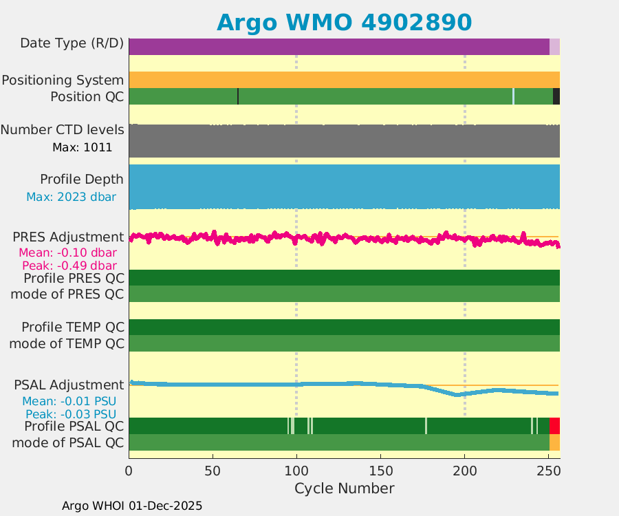 | WMO: #4902891 DAC: aoml PI: GREGORY C. JOHNSON NAVIS_A: #623 SBE41CP: #08005 DRUCK_2900PSIA: #10229361 Altimeter Comparison (IFREMER) EuroArgo Link | ![]() |