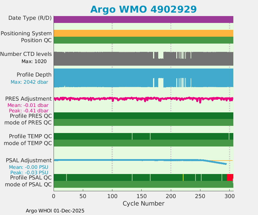 | WMO: #4902302 DAC: aoml PI: GREGORY C. JOHNSON NAVIS_A: #505 SBE41CP: #7128 DRUCK_2900PSIA: #4170089 Altimeter Comparison (IFREMER) EuroArgo Link | ![]() |