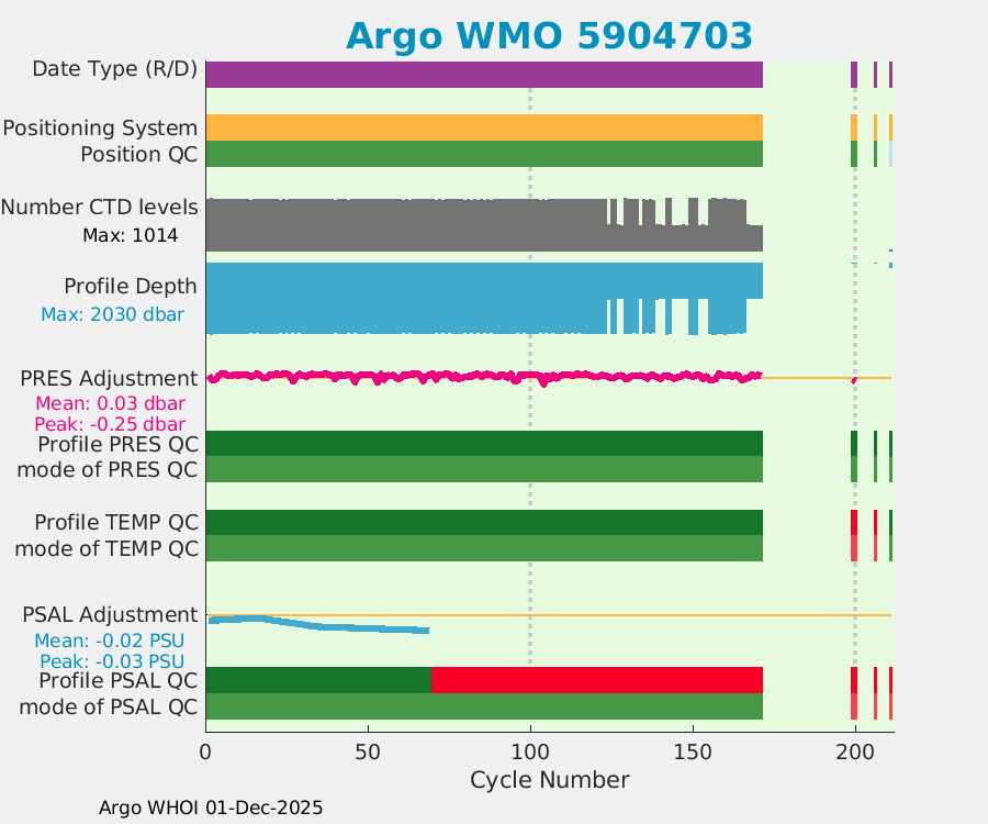 | WMO: #5904718 DAC: aoml PI: GREGORY C. JOHNSON NAVIS_A: #503 SBE41CP: #7091 DRUCK_2900PSIA: #4171987 Altimeter Comparison (IFREMER) EuroArgo Link | ![]() |
