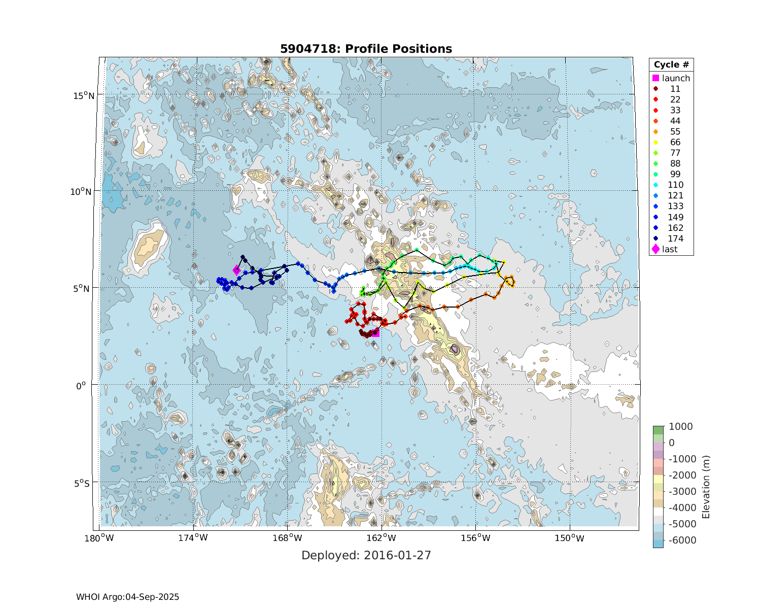 | WMO: #5904866 DAC: aoml PI: GREGORY C. JOHNSON NAVIS_A: #679 SBE41CP: #08191 KISTLER_2900PSIA: #4779972 Altimeter Comparison (IFREMER) EuroArgo Link | ![]() |