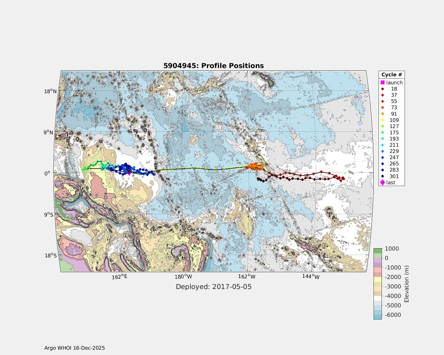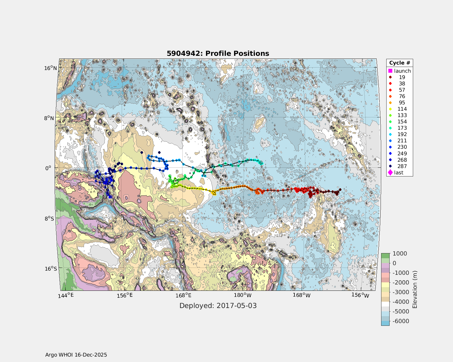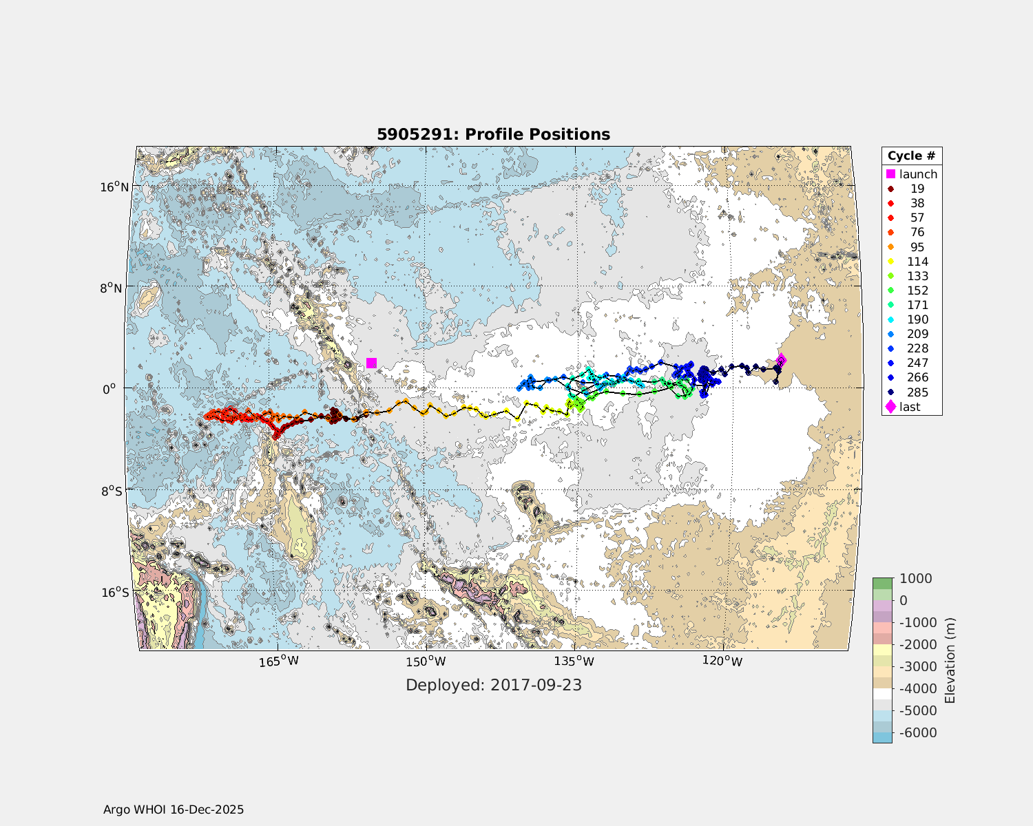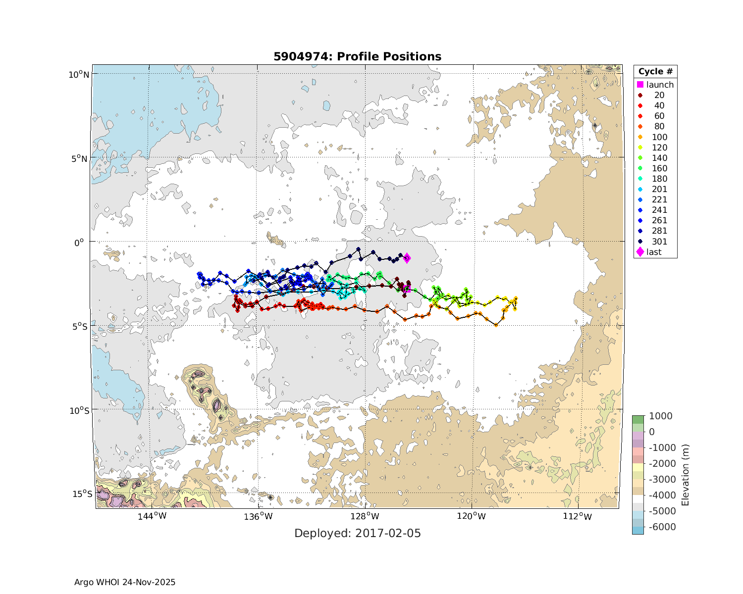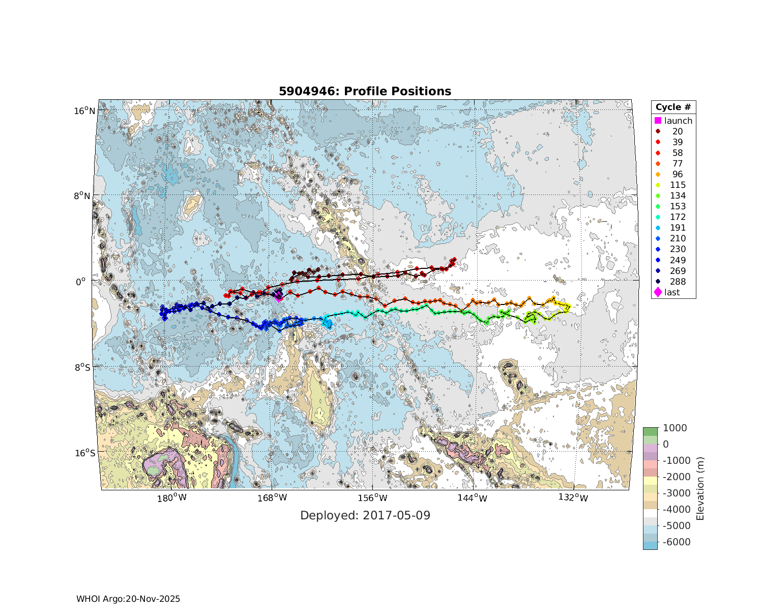 | WMO: #3901255 DAC: aoml PI: GREGORY C. JOHNSON NAVIS_A: #682 SBE41CP: #08309 KISTLER_2900PSIA: #4924294 Altimeter Comparison (IFREMER) EuroArgo Link | ![]() |