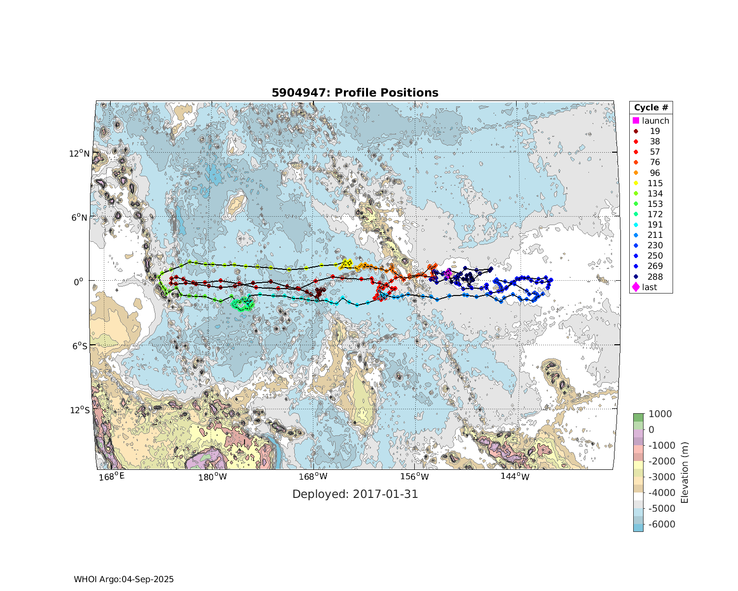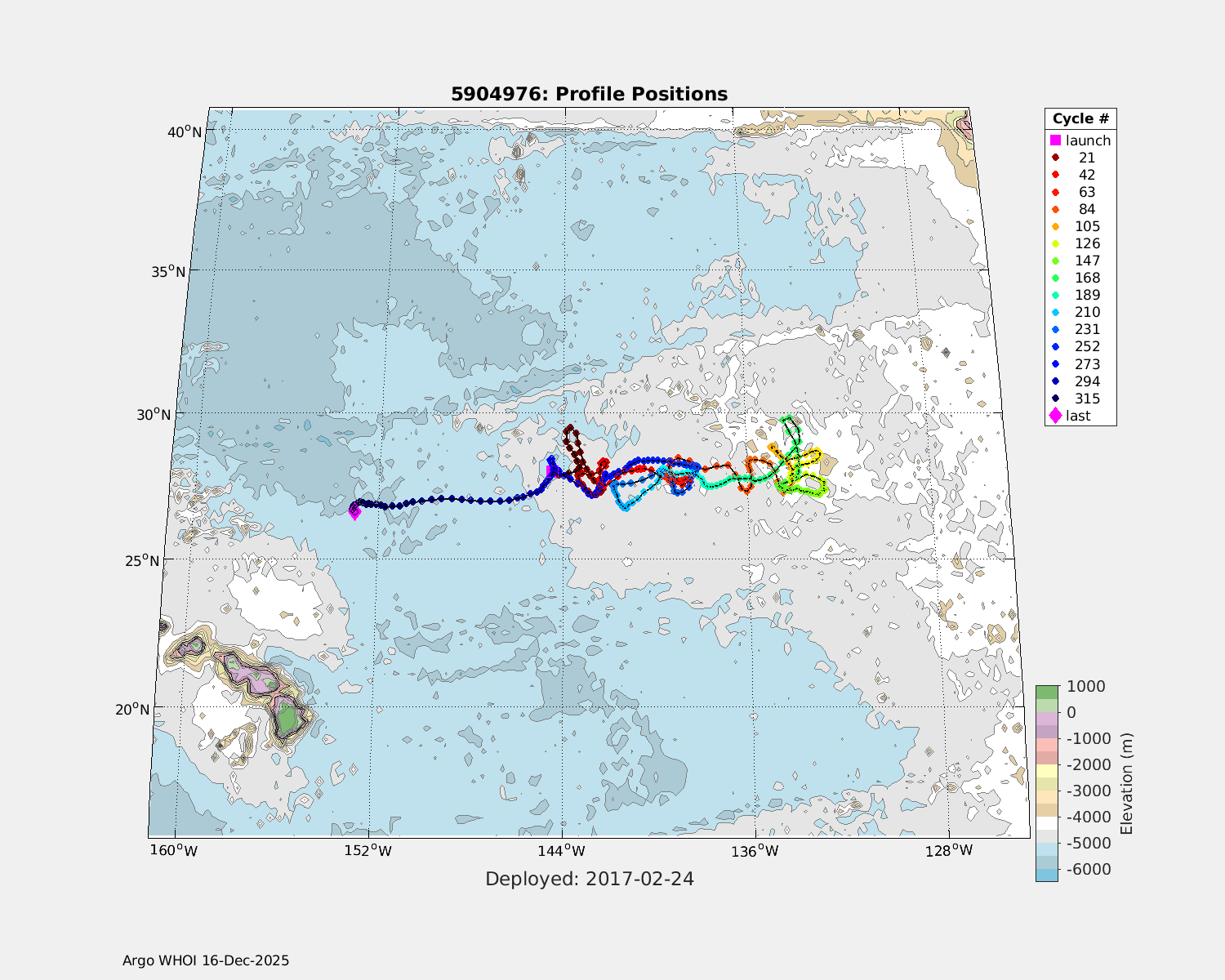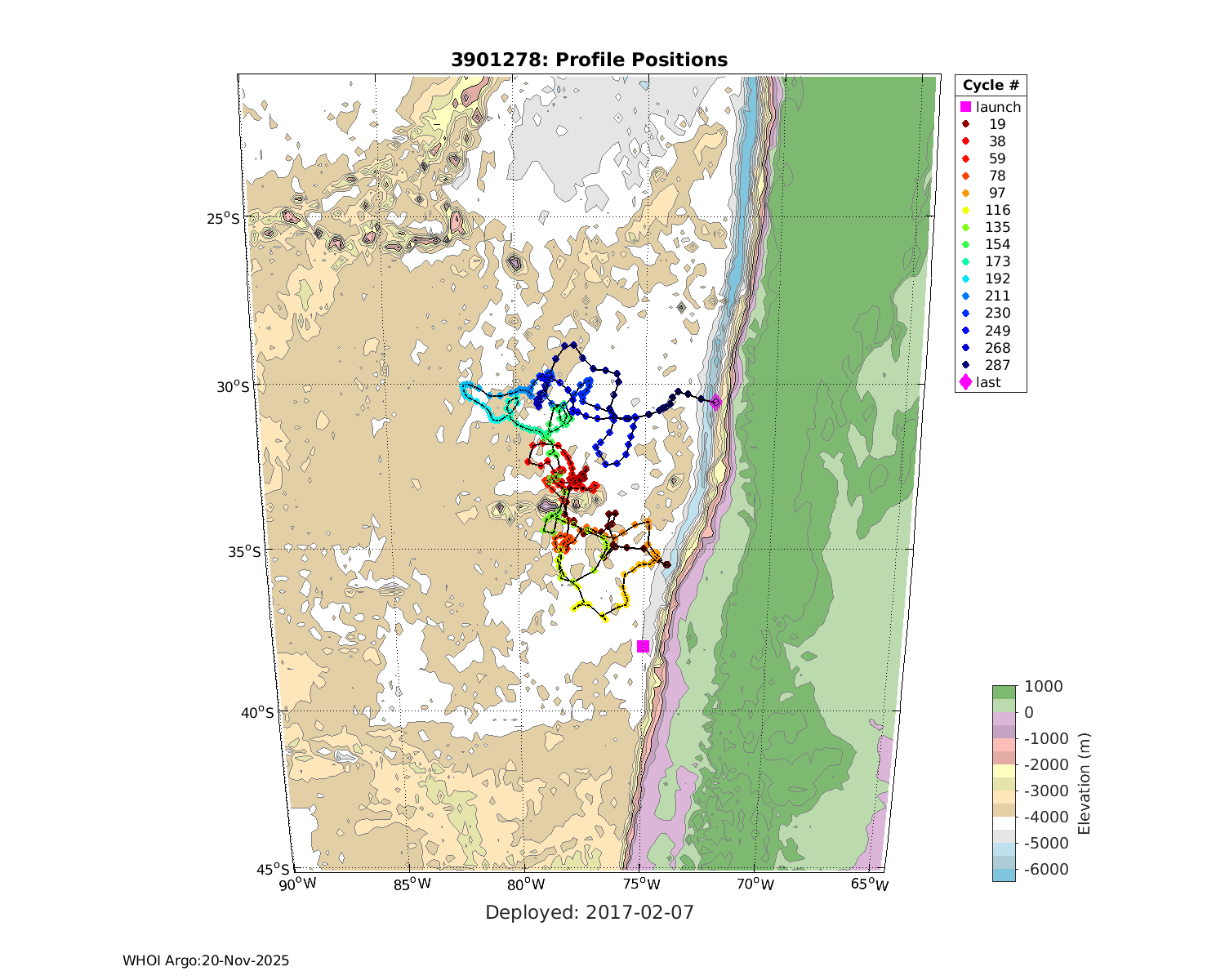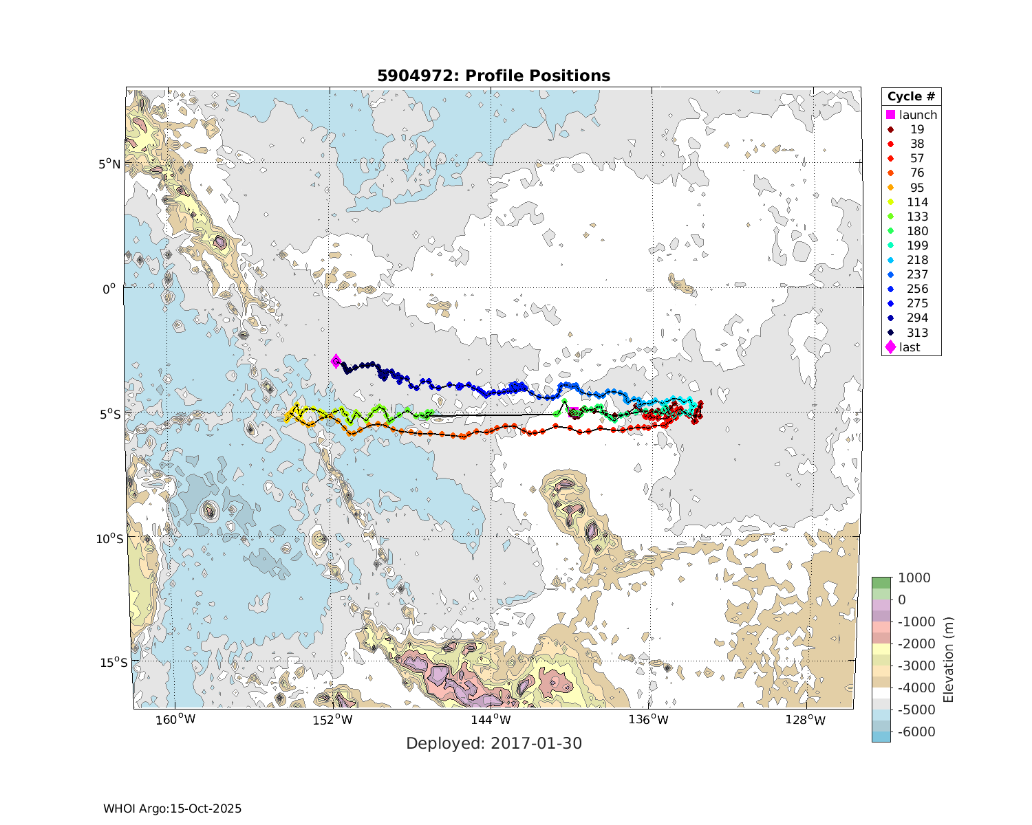 | WMO: #3901255 DAC: aoml PI: GREGORY C. JOHNSON NAVIS_A: #682 SBE41CP: #08309 KISTLER_2900PSIA: #4924294 Altimeter Comparison (IFREMER) EuroArgo Link | ![]() |