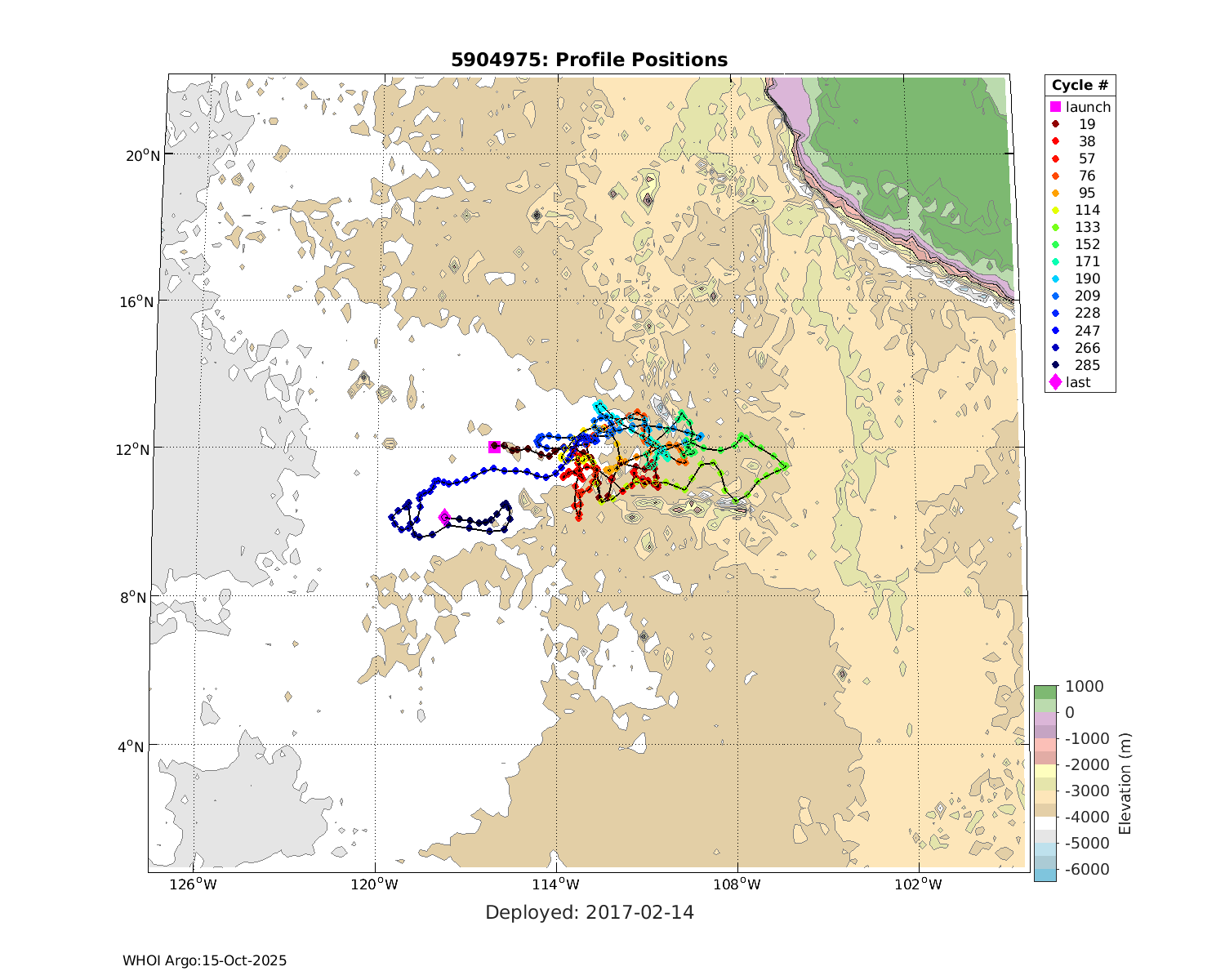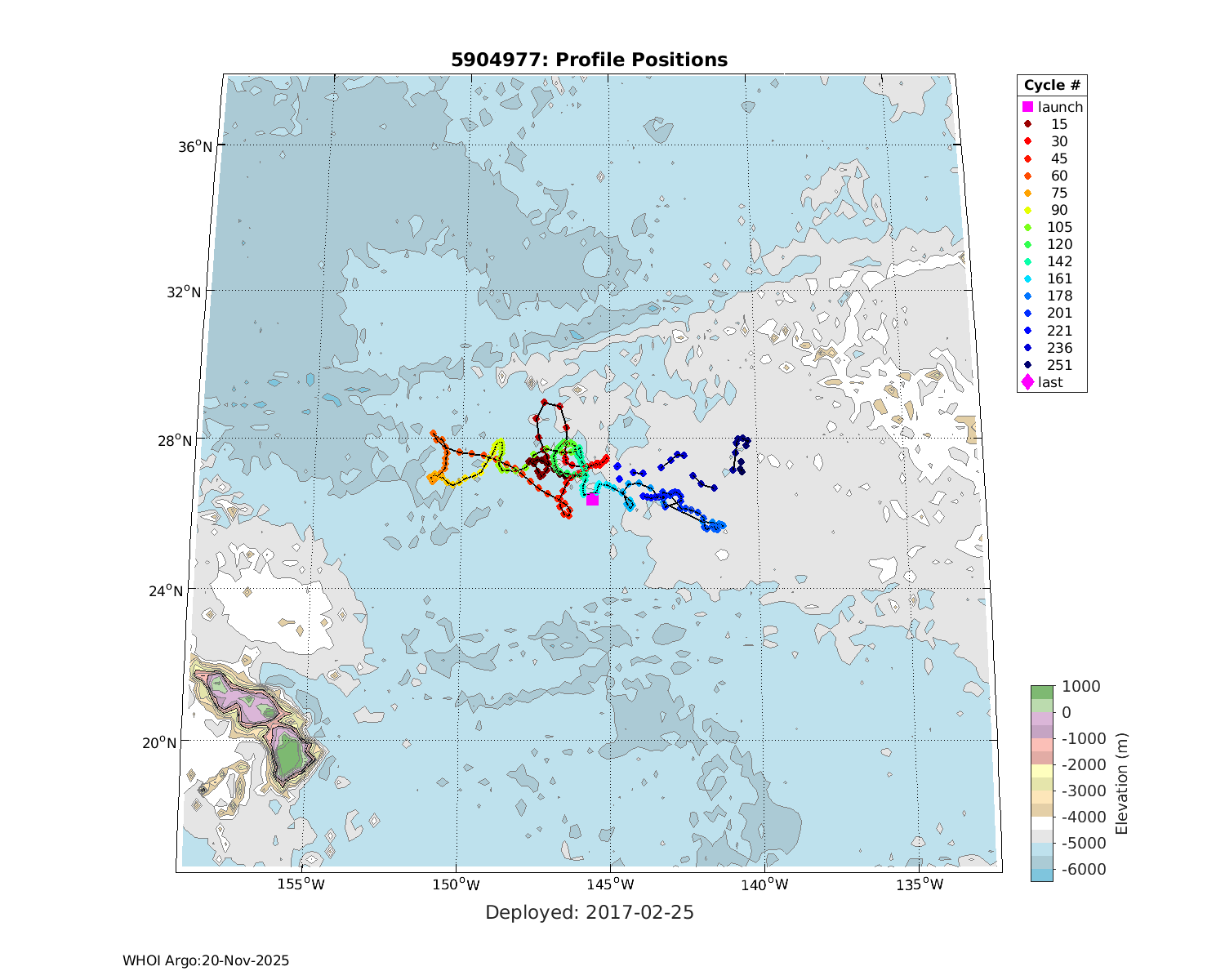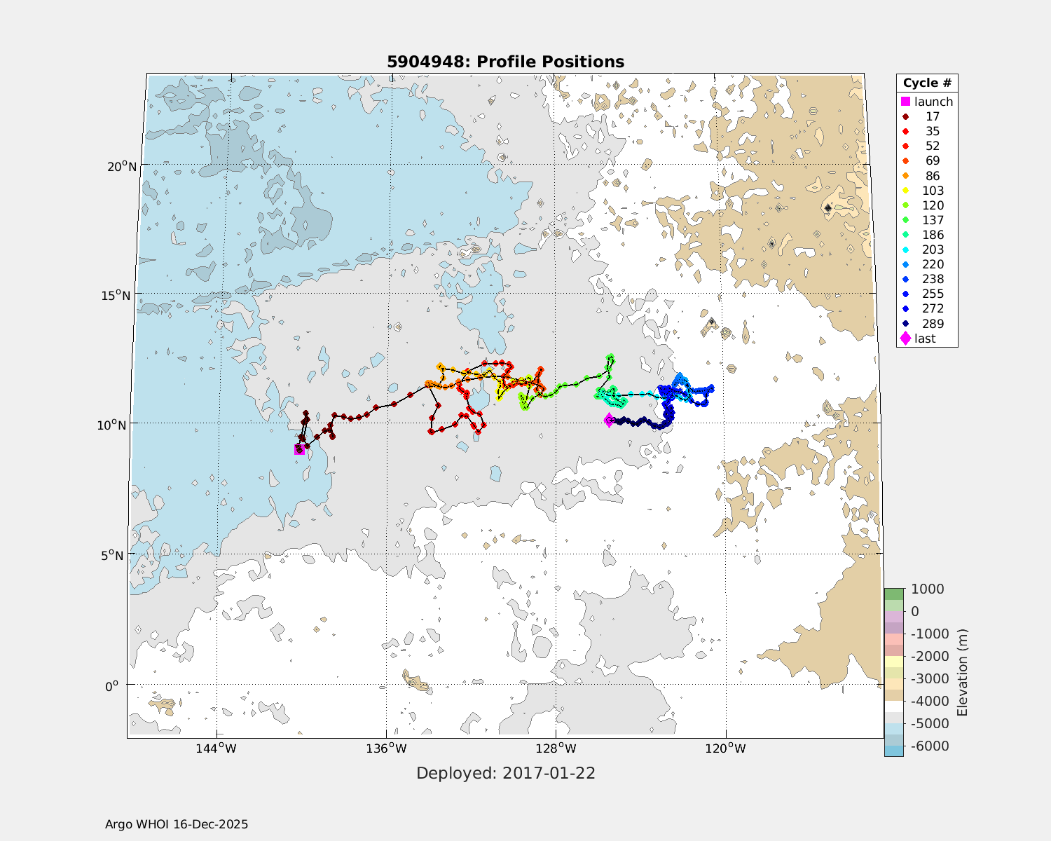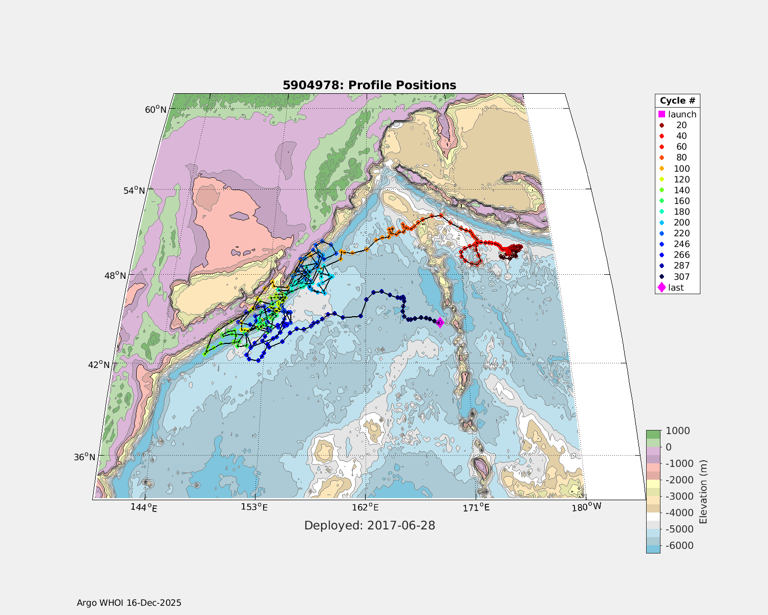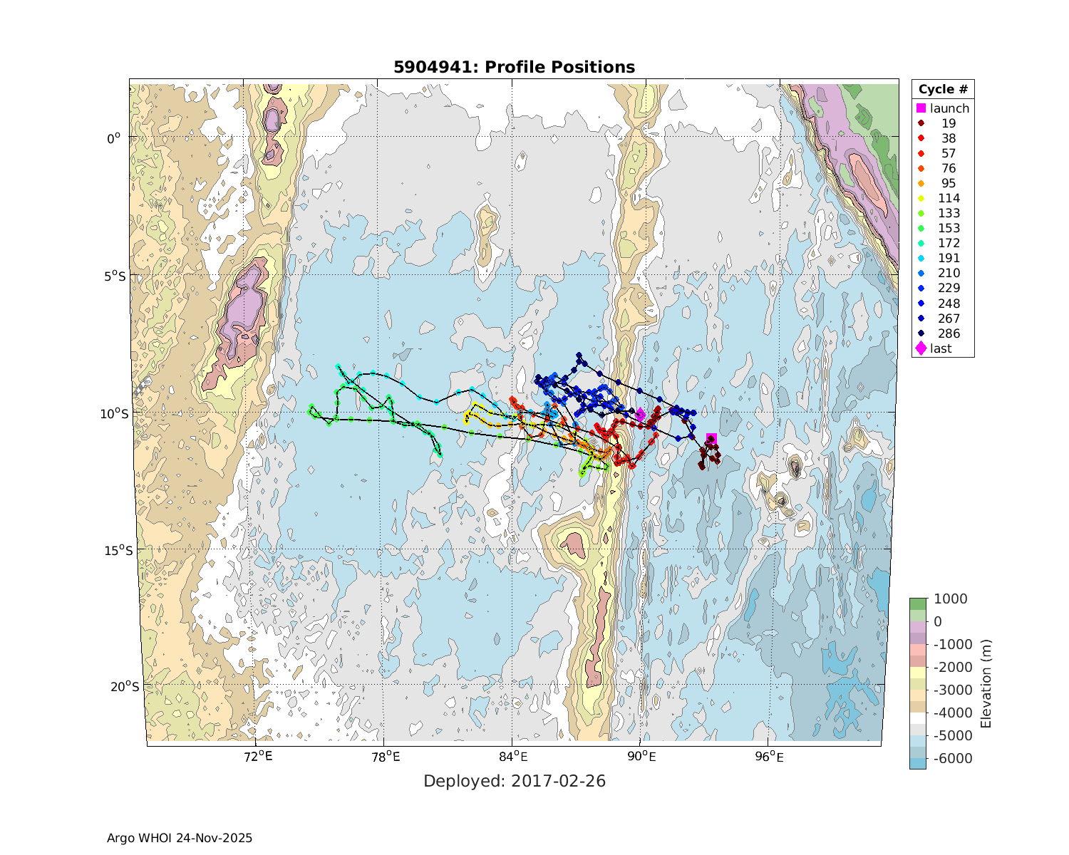 | WMO: #3901255 DAC: aoml PI: GREGORY C. JOHNSON NAVIS_A: #682 SBE41CP: #08309 KISTLER_2900PSIA: #4924294 Altimeter Comparison (IFREMER) EuroArgo Link | ![]() |