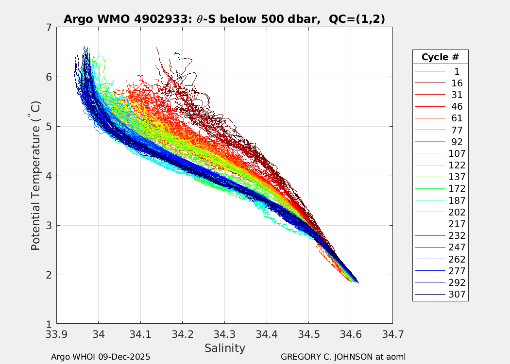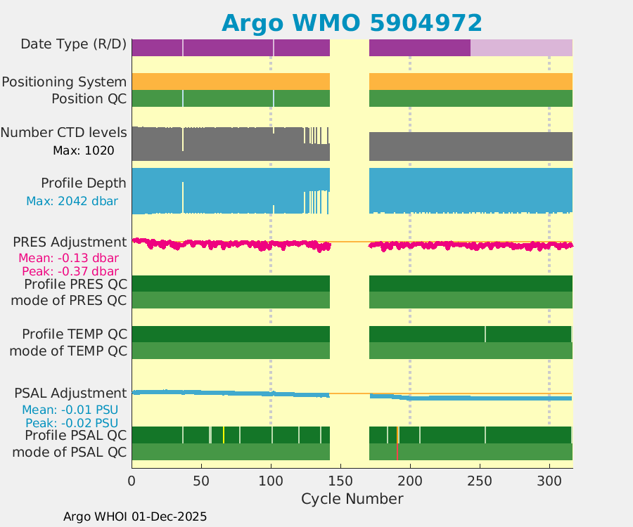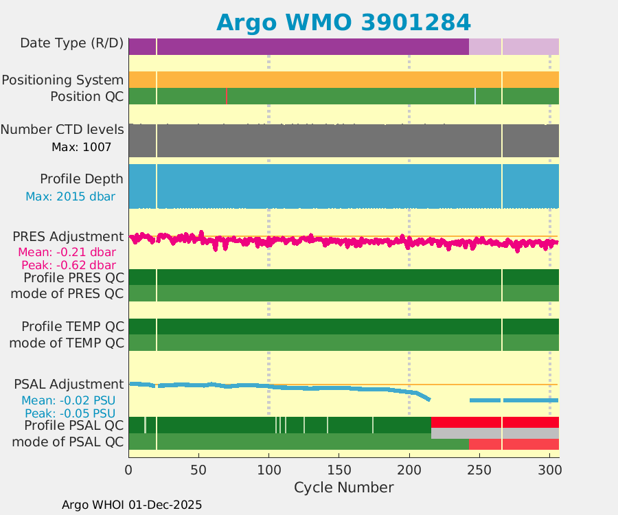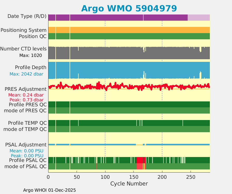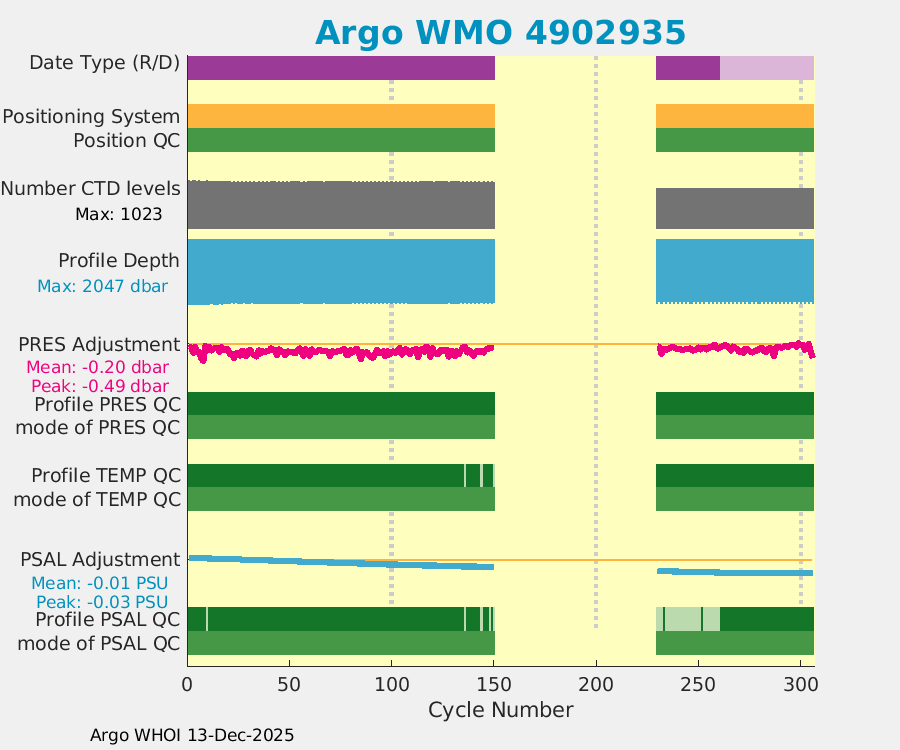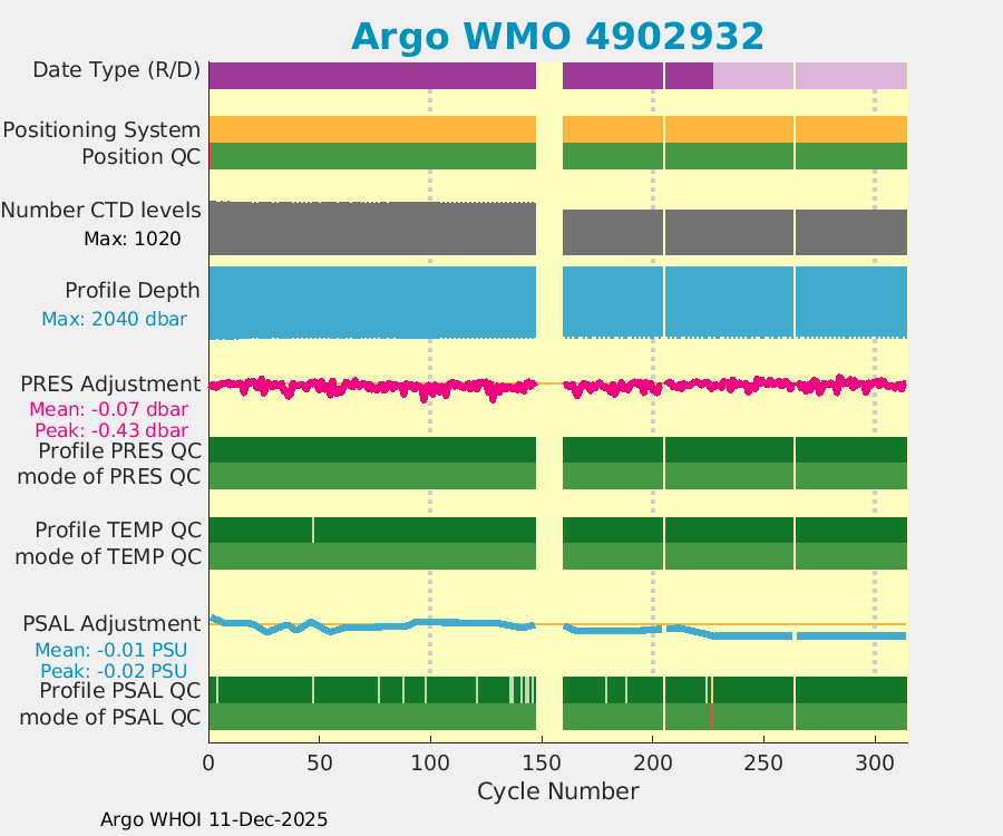 | WMO: #4902907 DAC: aoml PI: GREGORY C. JOHNSON NAVIS_A: #732 SBE41CP: #8691 DRUCK_2900PSIA: #10300468 Altimeter Comparison (IFREMER) EuroArgo Link | ![]() |