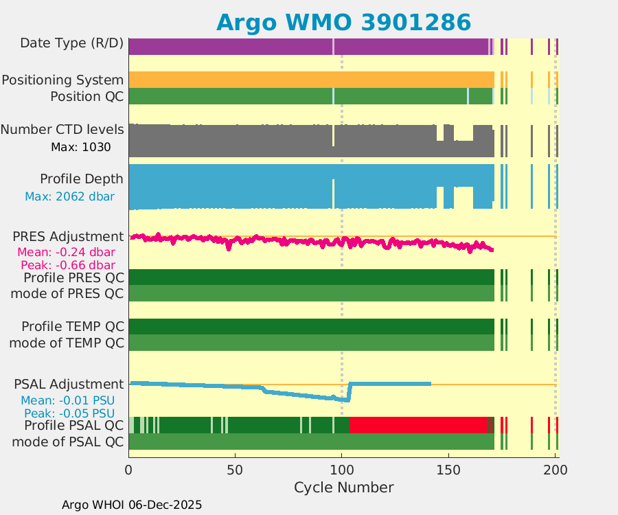 | WMO: #5905286 DAC: aoml PI: GREGORY C. JOHNSON NAVIS_A: #788 SBE41CP: #09240 DRUCK_2900PSIA: #10445361 Altimeter Comparison (IFREMER) EuroArgo Link | ![]() |