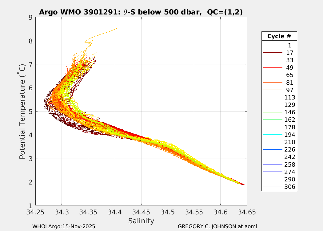 | WMO: #3901294 DAC: aoml PI: GREGORY C. JOHNSON NAVIS_A: #737 SBE41CP: #08650 DRUCK_2900PSIA: #10374303 Altimeter Comparison (IFREMER) EuroArgo Link | ![]() |