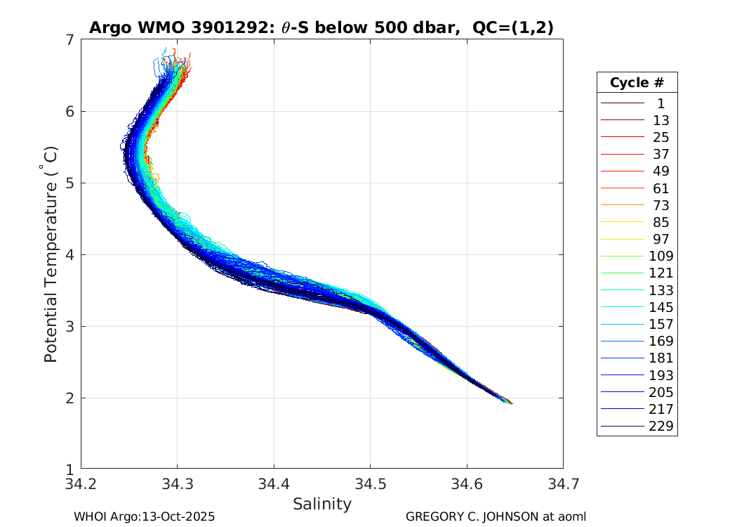 | WMO: #3901292 DAC: aoml PI: GREGORY C. JOHNSON NAVIS_A: #727 SBE41CP: #08639 DRUCK_2900PSIA: #10300606 Altimeter Comparison (IFREMER) EuroArgo Link | ![]() |