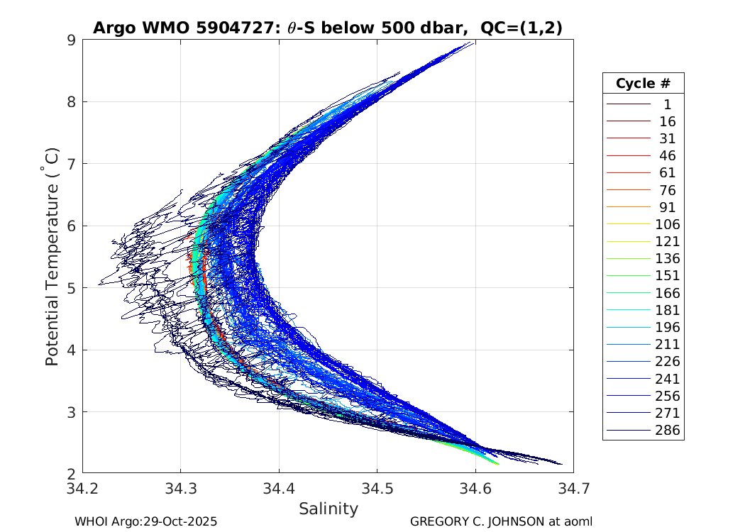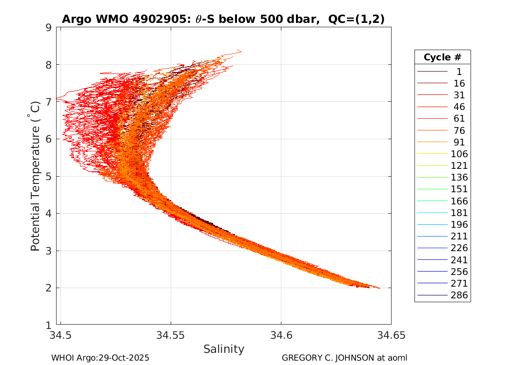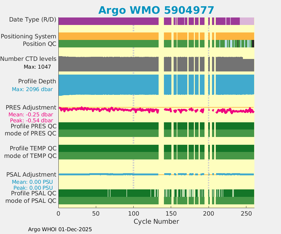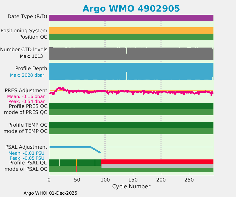 | WMO: #4902905 DAC: aoml PI: GREGORY C. JOHNSON NAVIS_A: #730 SBE41CP: #8709 DRUCK_2900PSIA: #10300789 Altimeter Comparison (IFREMER) EuroArgo Link | ![]() |