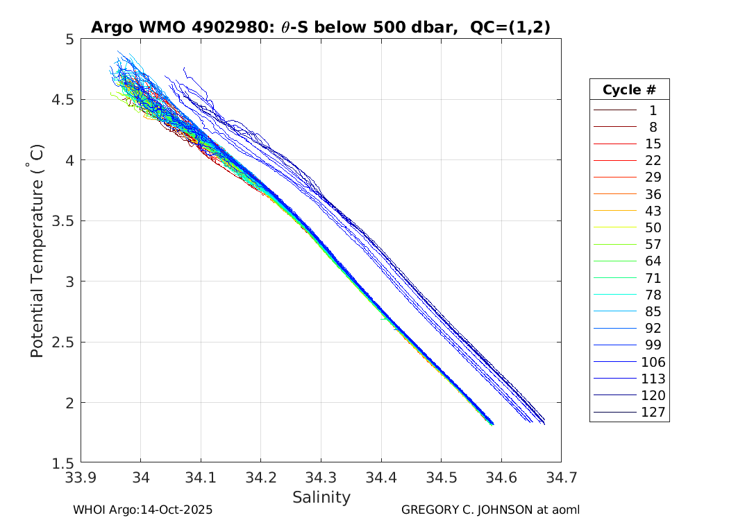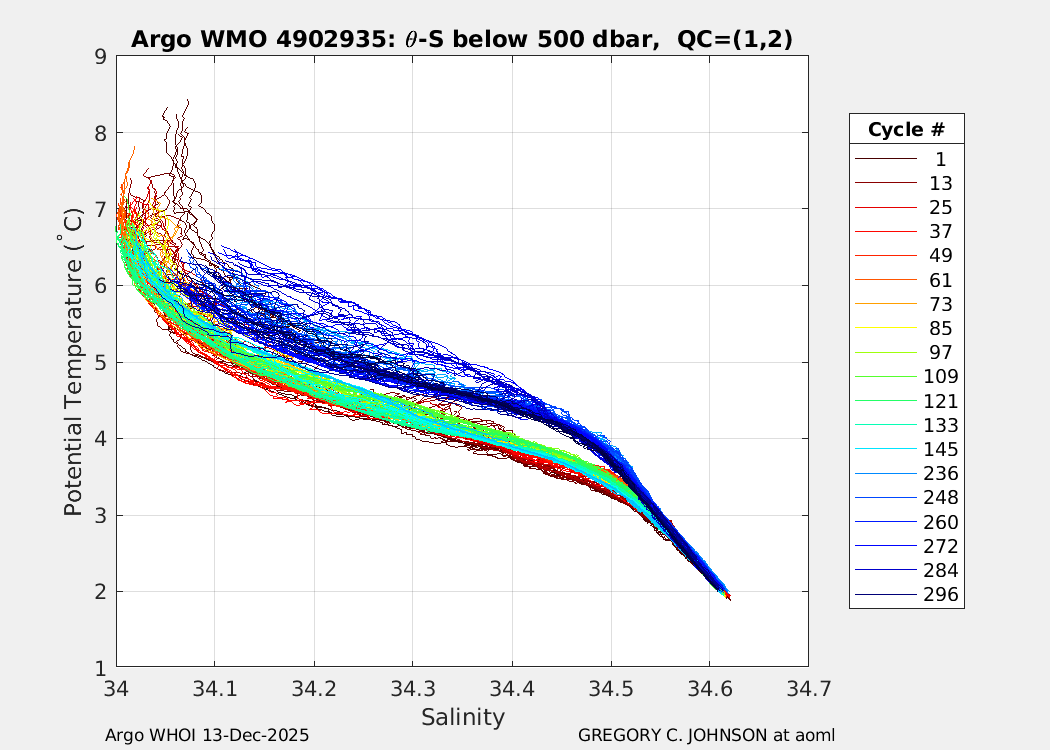 | WMO: #4902980 DAC: aoml PI: GREGORY C. JOHNSON NAVIS_A: #829 SBE41CP: #09807 DRUCK_2900PSIA: #10649481 Altimeter Comparison (IFREMER) EuroArgo Link | ![]() |