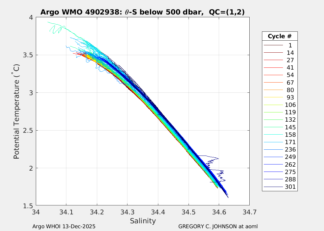 | WMO: #4902938 DAC: aoml PI: GREGORY C. JOHNSON NAVIS_A: #780 SBE41CP: #08969 DRUCK_2900PSIA: #10445347 Altimeter Comparison (IFREMER) EuroArgo Link | ![]() |
