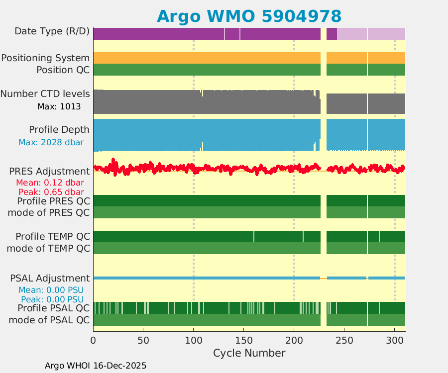 | WMO: #5904724 DAC: aoml PI: GREGORY C. JOHNSON NAVIS_A: #551 SBE41CP: #7474 DRUCK_2900PSIA: #10083522 Altimeter Comparison (IFREMER) EuroArgo Link | ![]() |