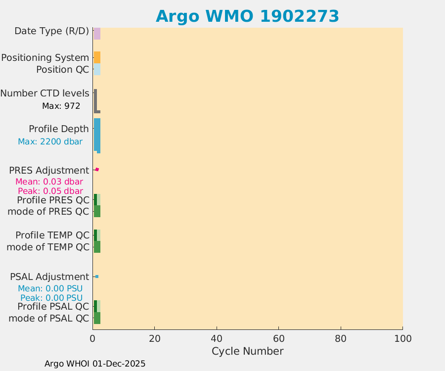| WMO: #1902273 DAC: aoml PI: GREGORY C. JOHNSON NAVIS_A: #1285 SBE41CP: #13528 DRUCK_2900PSIA: #11519865 Altimeter Comparison (IFREMER) EuroArgo Link | n/a | n/a | ![]() |