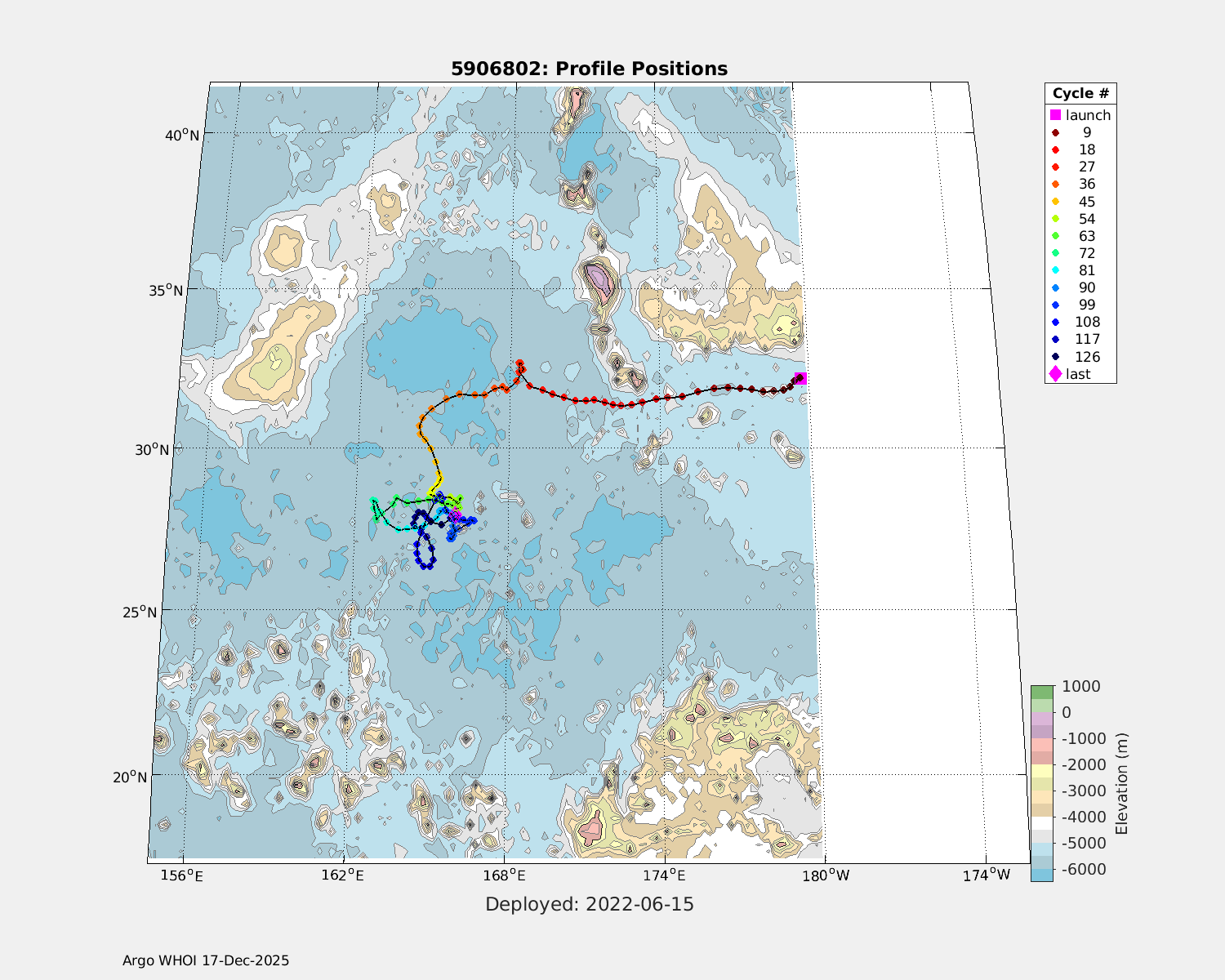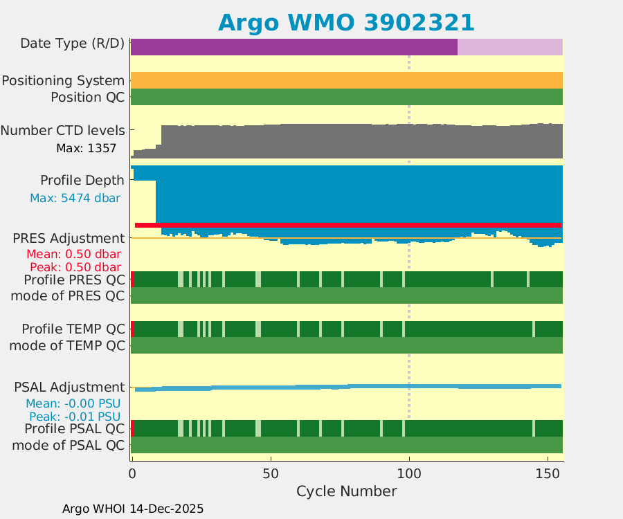 | WMO: #4903393 DAC: aoml PI: GREGORY C. JOHNSON NAVIS_A: #1377 SBE41CP: #16702 DRUCK_2900PSIA: #11995302 Altimeter Comparison (IFREMER) EuroArgo Link | ![]() |