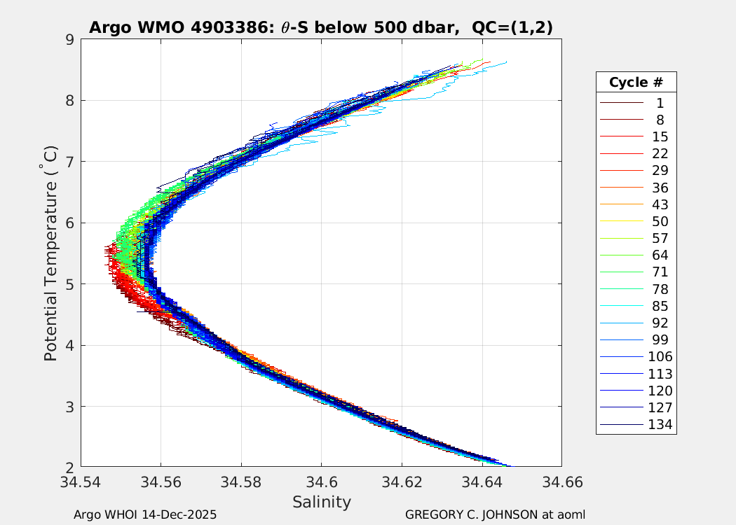 | WMO: #4903386 DAC: aoml PI: GREGORY C. JOHNSON NAVIS_A: #1421 SBE41CP: #16504 DRUCK_2900PSIA: #11963124 Altimeter Comparison (IFREMER) EuroArgo Link | ![]() |