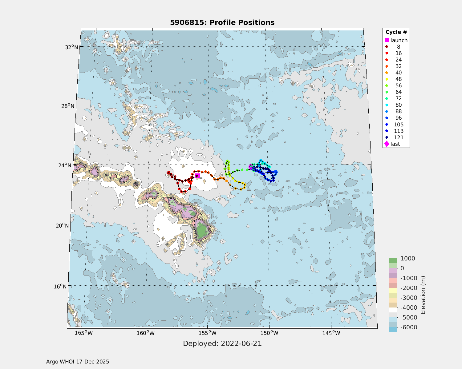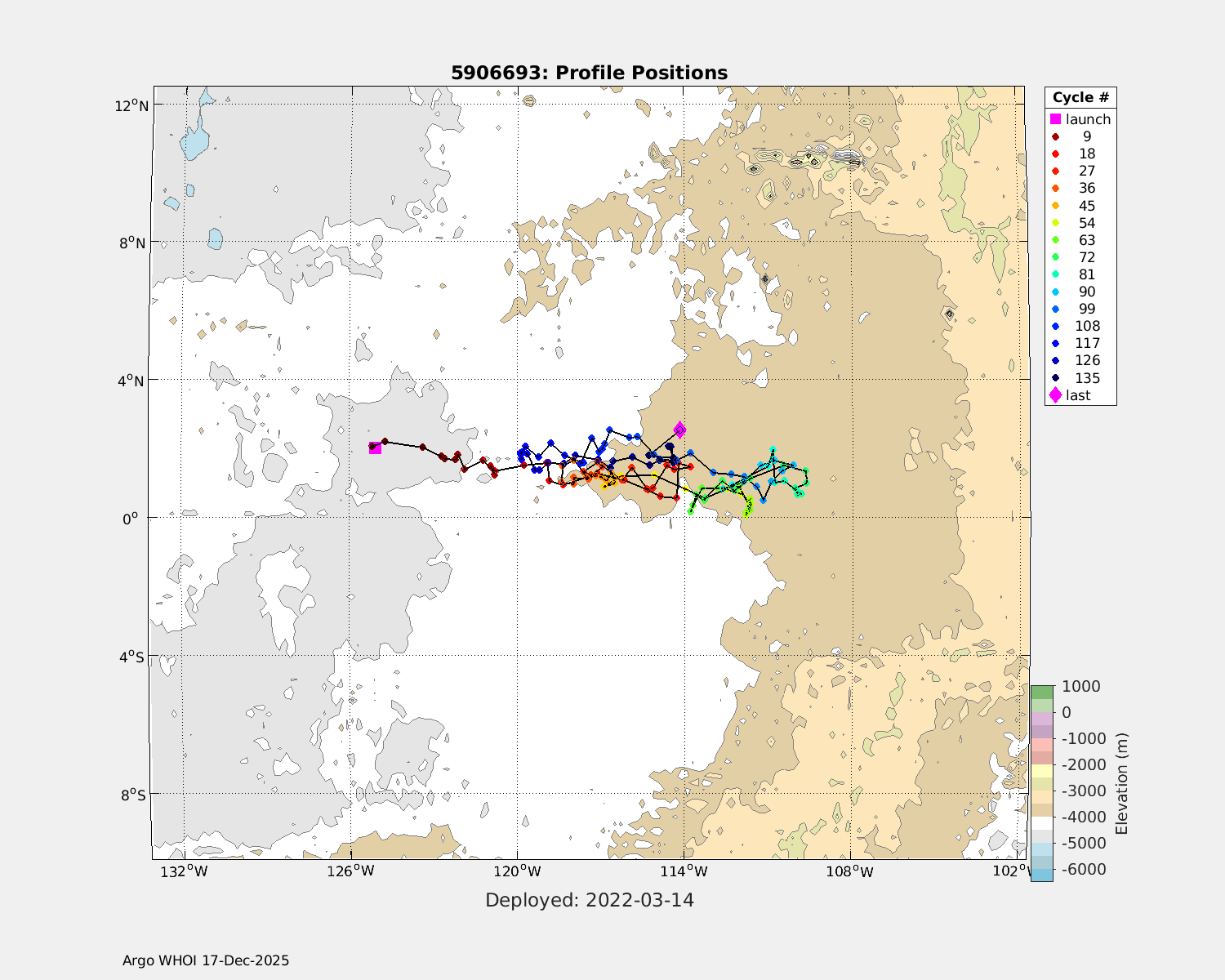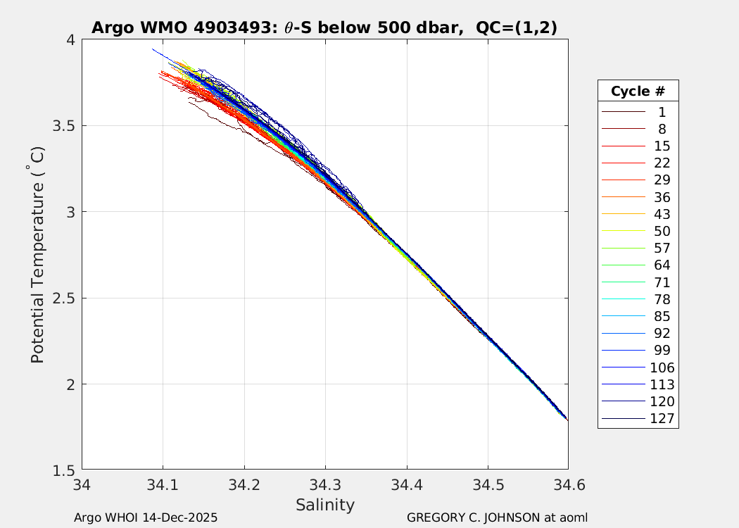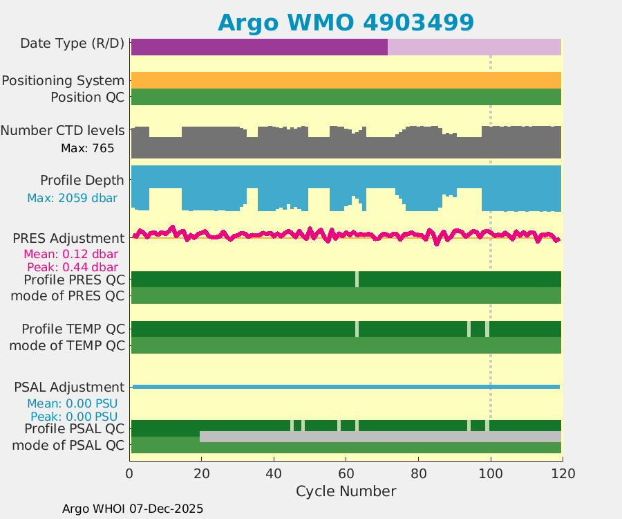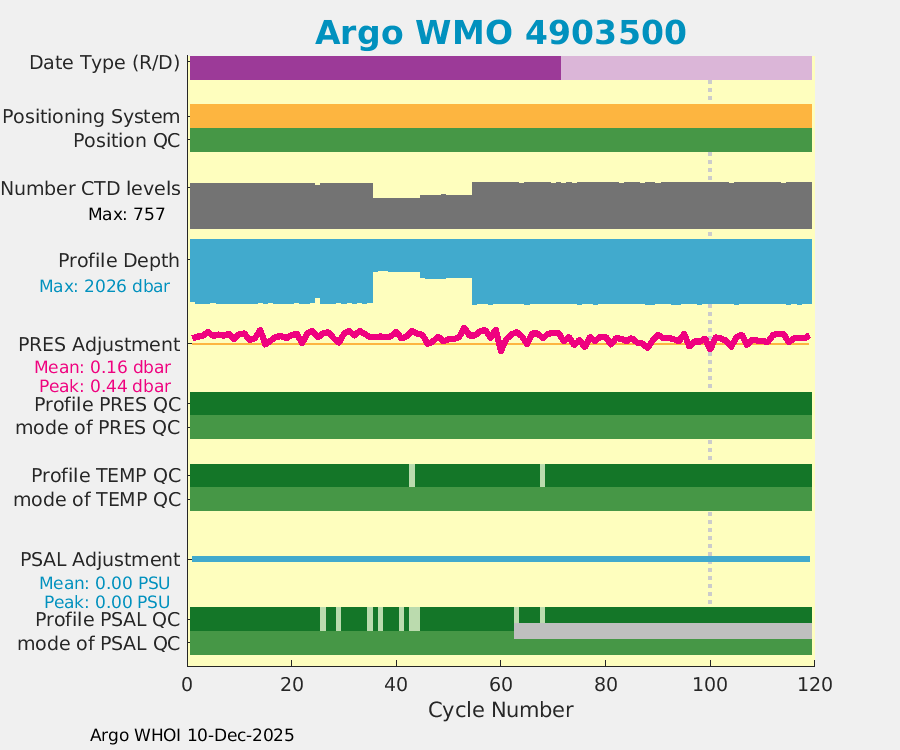 | WMO: #4903493 DAC: aoml PI: GREGORY C. JOHNSON NAVIS_A: #1428 SBE41CP: #16973 DRUCK_2900PSIA: #11995022 Altimeter Comparison (IFREMER) EuroArgo Link | ![]() |