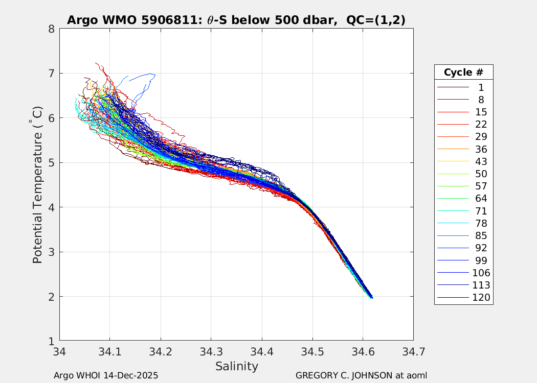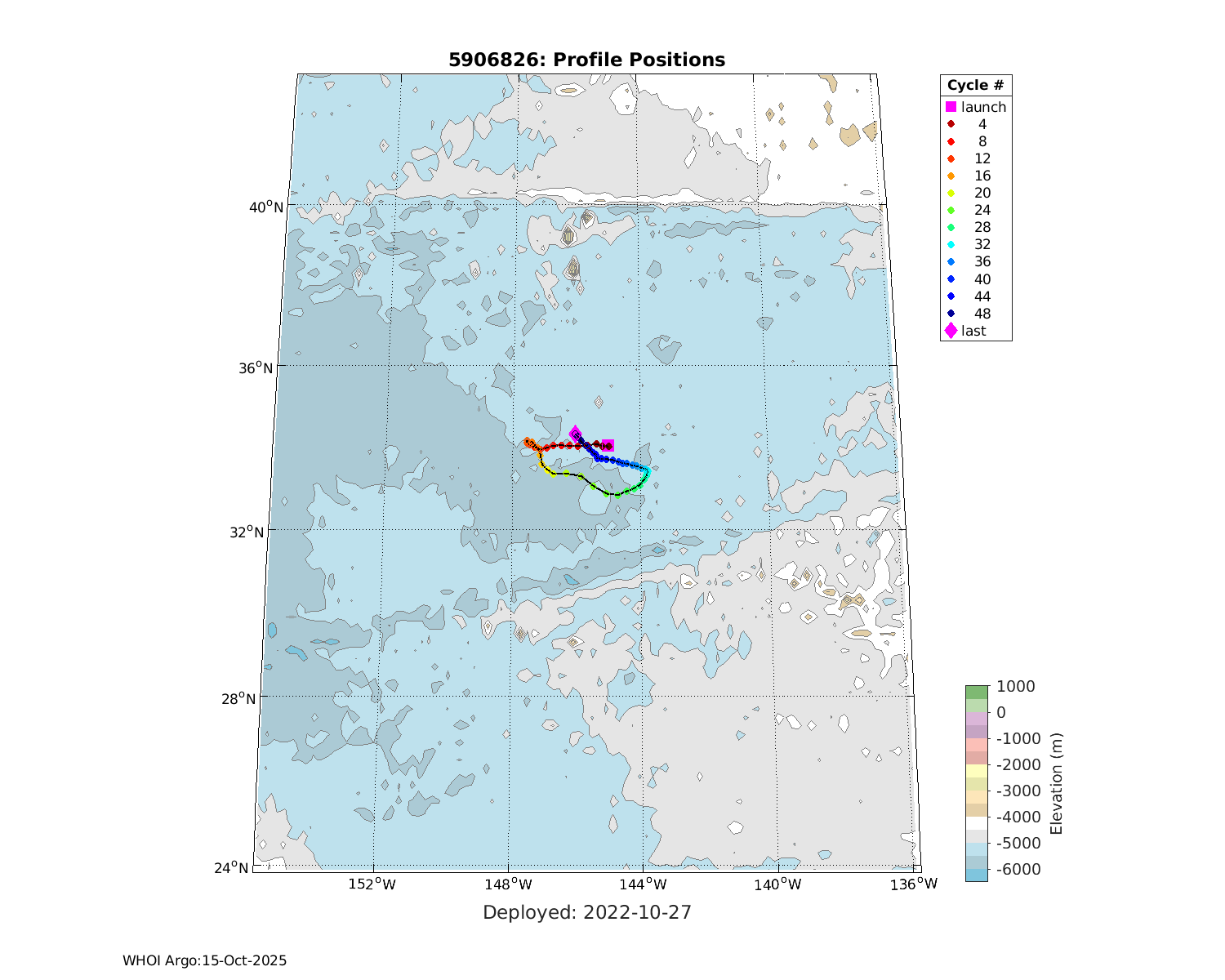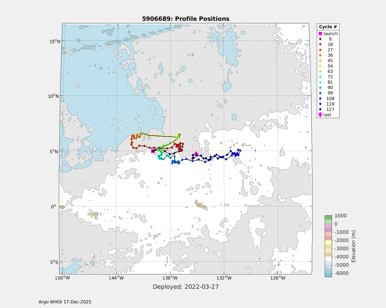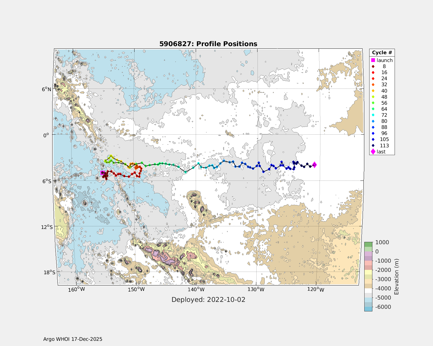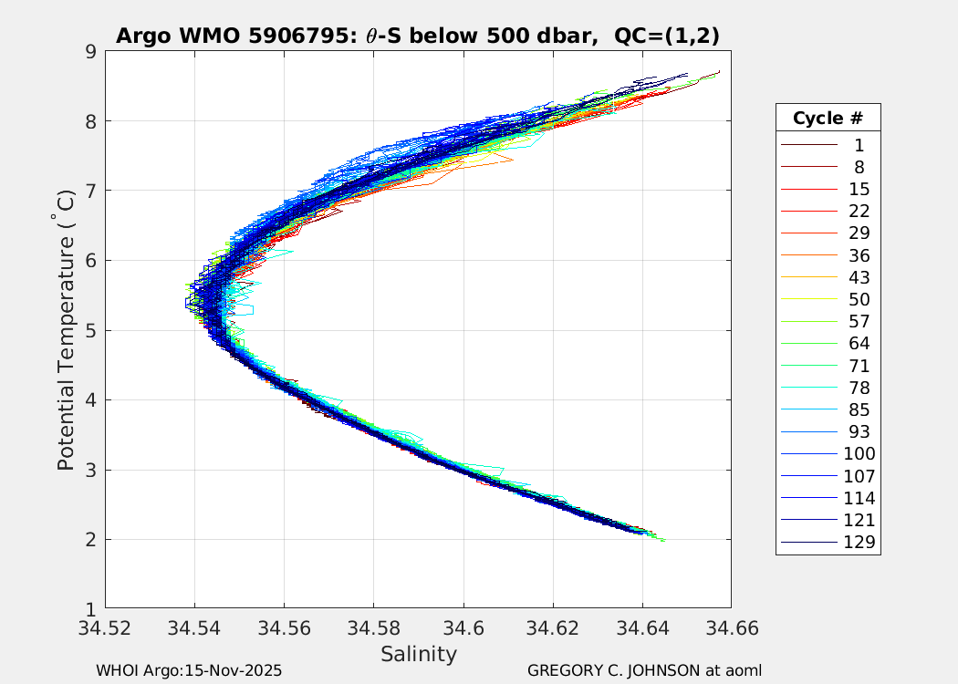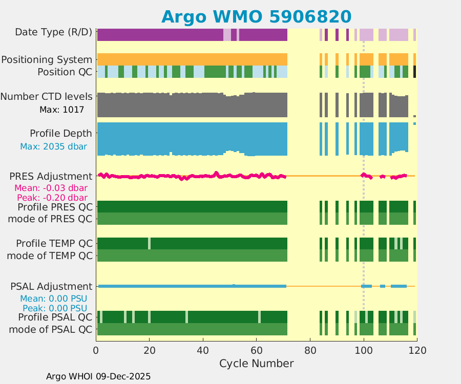 | WMO: #5906829 DAC: aoml PI: GREGORY C. JOHNSON SOLO_D MRV: #12054 SBE61: #5833 KISTLER_10153PSIA: #5595174 Altimeter Comparison (IFREMER) EuroArgo Link | ![]() |