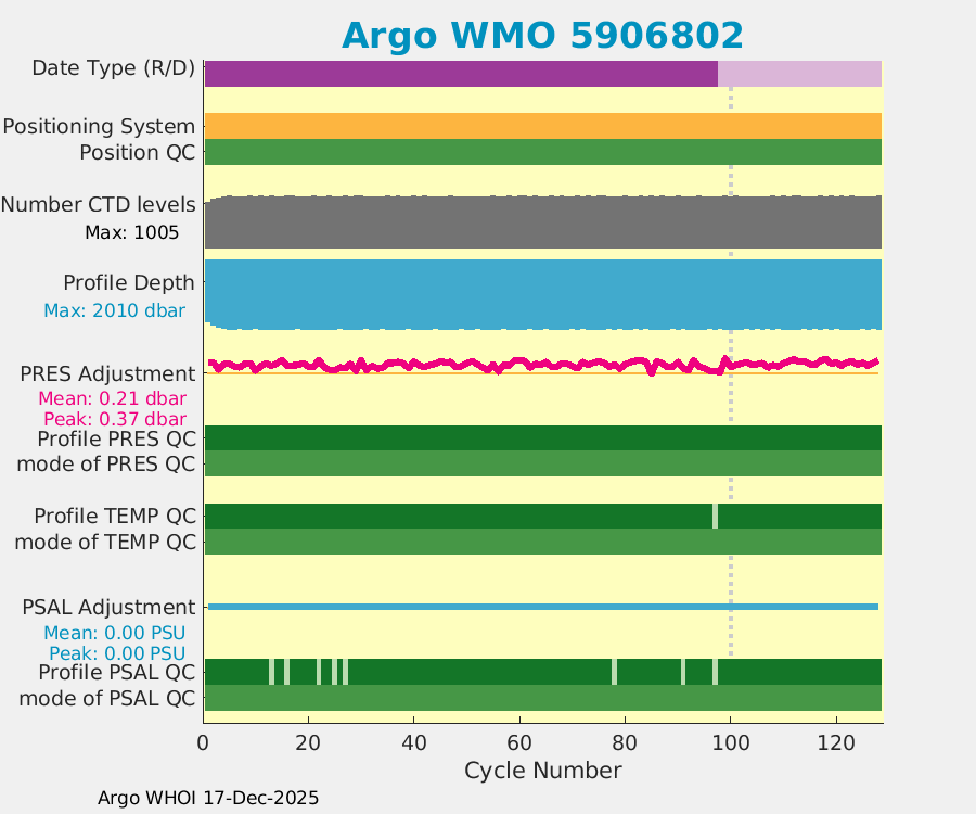 | WMO: #5906801 DAC: aoml PI: GREGORY C. JOHNSON NAVIS_A: #1435 SBE41CP: #17130 DRUCK_2900PSIA: #12058314 Altimeter Comparison (IFREMER) EuroArgo Link | ![]() |