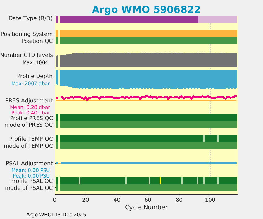 | WMO: #5906817 DAC: aoml PI: GREGORY C. JOHNSON NAVIS_A: #1399 SBE41CP: #16996 DRUCK_2900PSIA: #12042044 Altimeter Comparison (IFREMER) EuroArgo Link | ![]() |