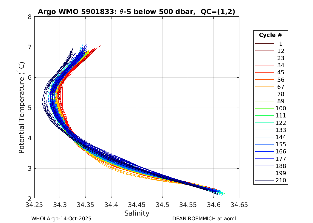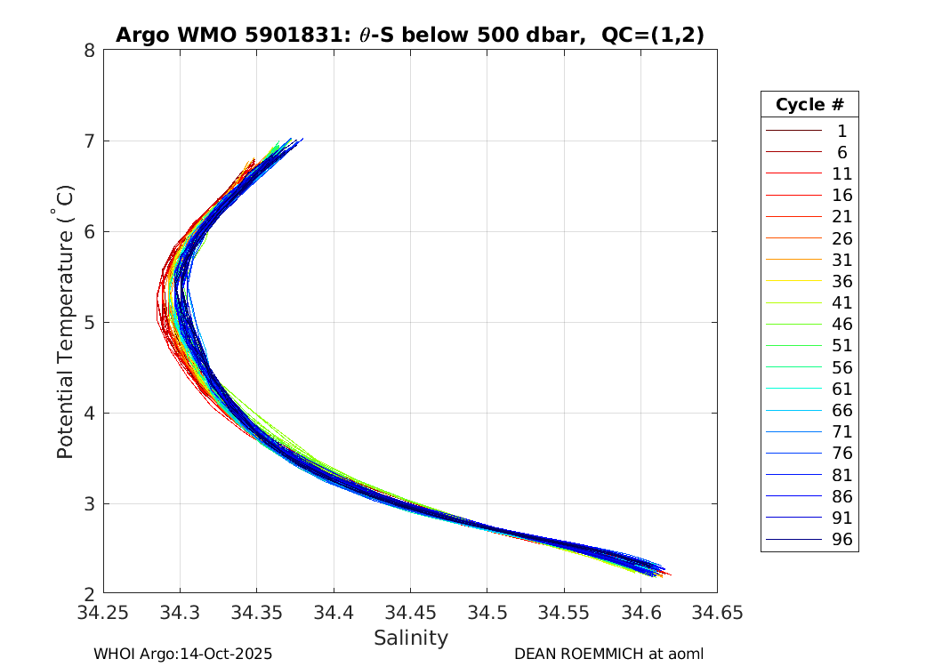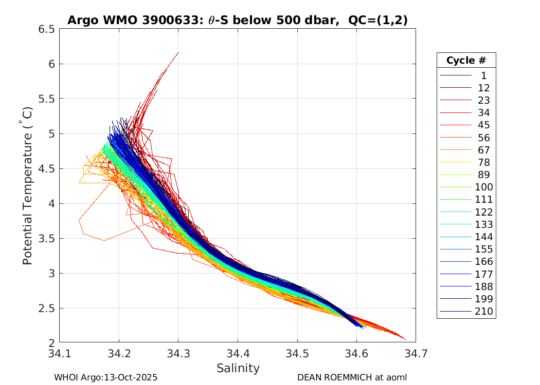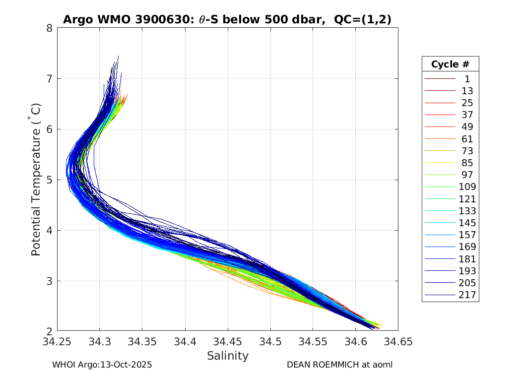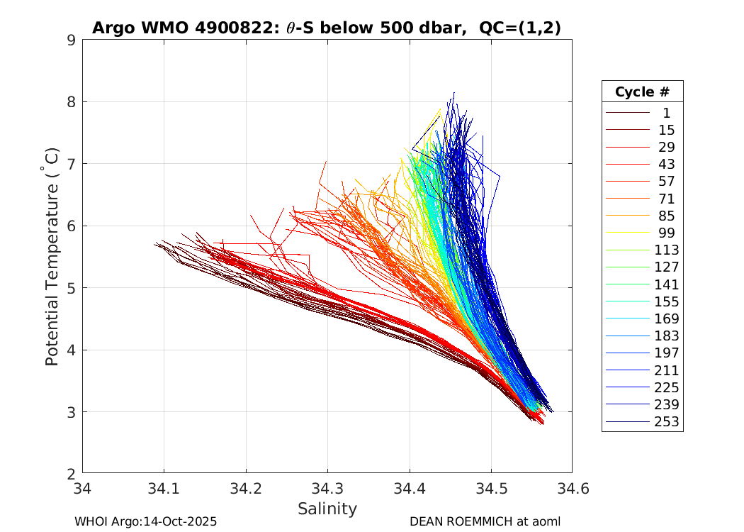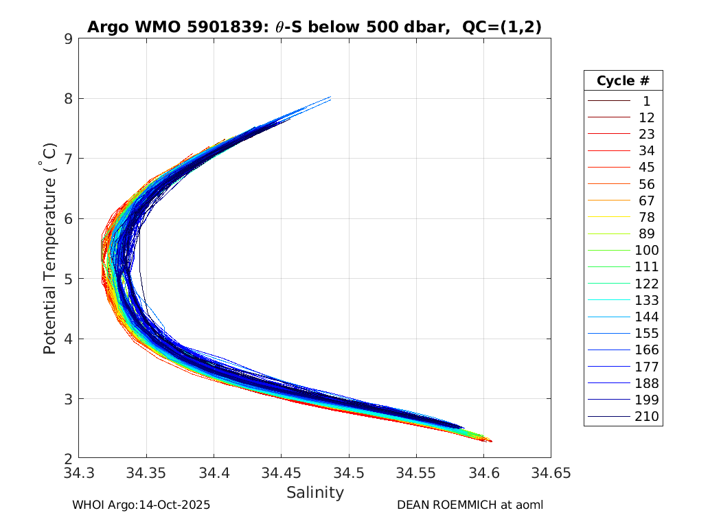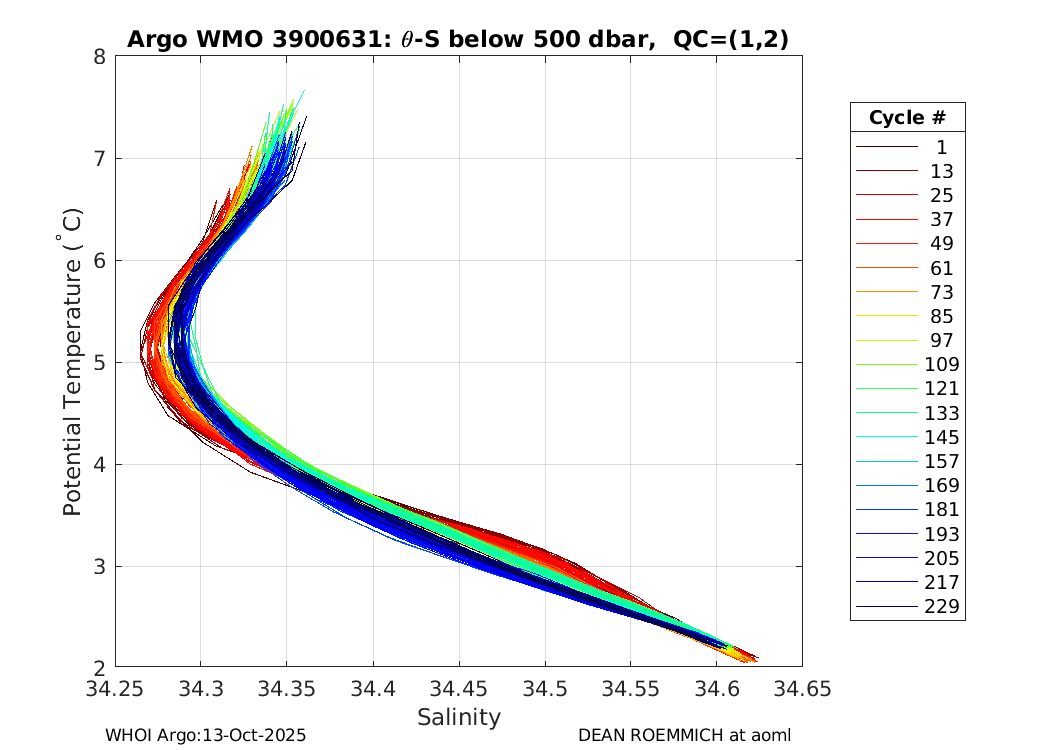| WMO: #3900638 DAC: aoml PI: DEAN ROEMMICH SOLO: #2734 DRUCK_2900PSIA: #2424886 SBE41CP_V2: #1850 Altimeter Comparison (IFREMER) EuroArgo Link | ![]() |