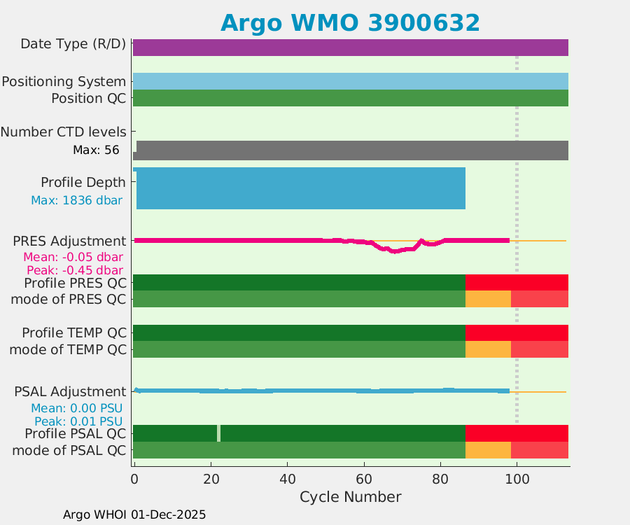 | WMO: #3900636 DAC: aoml PI: DEAN ROEMMICH SOLO: #2732 DRUCK_2900PSIA: #2432281 SBE41CP_V2: #1858 Altimeter Comparison (IFREMER) EuroArgo Link | ![]() |