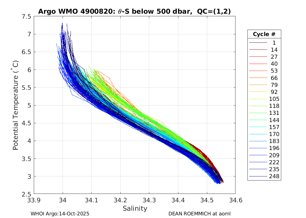 | WMO: #5901820 DAC: aoml PI: DEAN ROEMMICH SOLO: #2690 DRUCK_2900PSIA: #2385335 SBE41CP_V2: #1703 Altimeter Comparison (IFREMER) EuroArgo Link | ![]() |