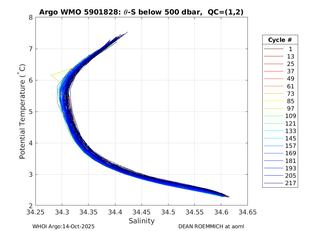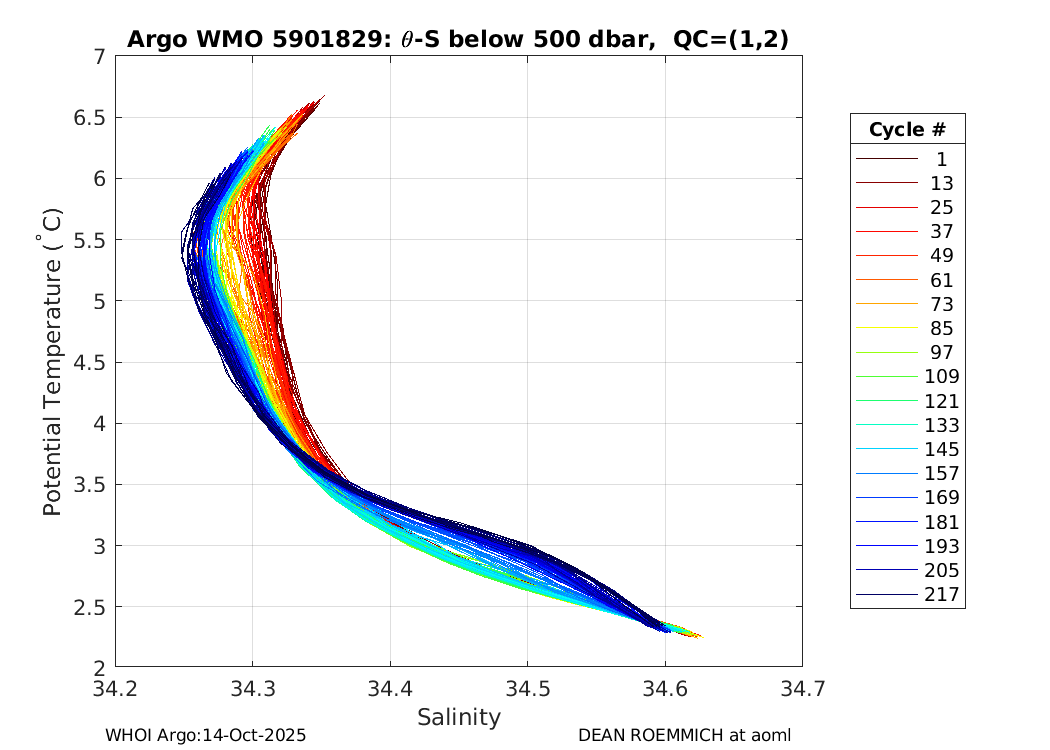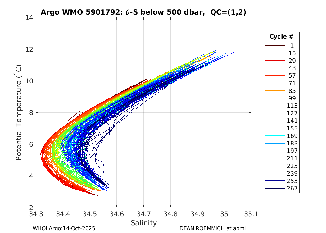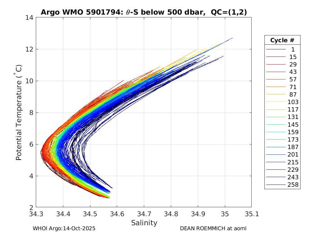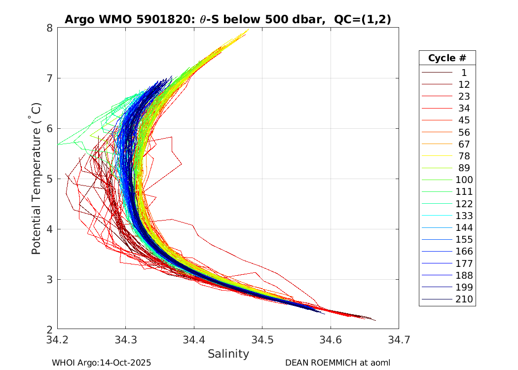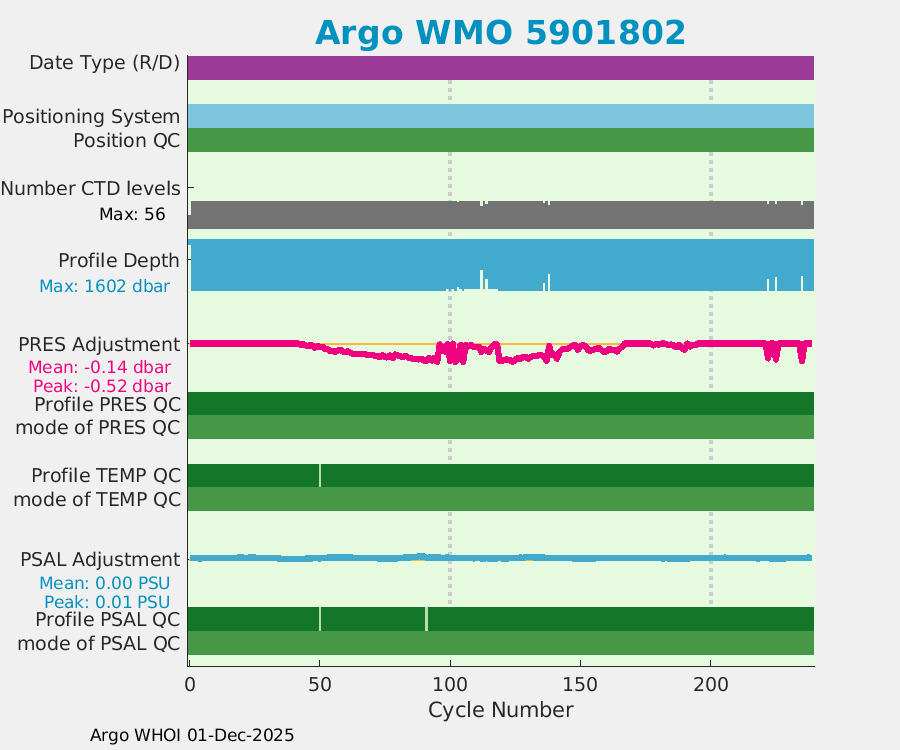 | WMO: #5901759 DAC: aoml PI: DEAN ROEMMICH SOLO: #2643 DRUCK_2900PSIA: #2358543 SBE41CP_V2: #1679 Altimeter Comparison (IFREMER) EuroArgo Link | ![]() |