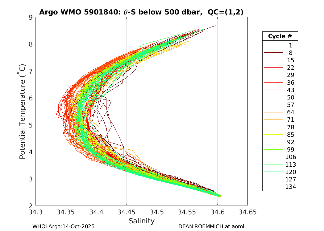 | WMO: #5901840 DAC: aoml PI: DEAN ROEMMICH SOLO: #2730 DRUCK_2900PSIA: #2432258 SBE41CP_V2: #1830 Altimeter Comparison (IFREMER) EuroArgo Link | ![]() |