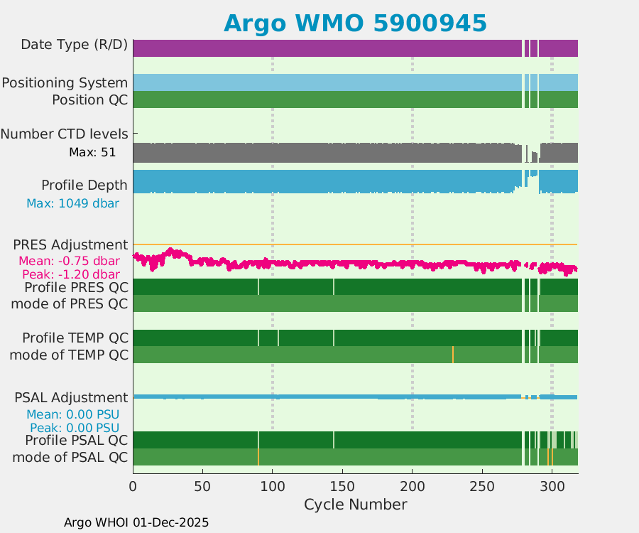 | WMO: #5901051 DAC: aoml PI: STEPHEN RISER APEX: #2124 SBE41: #2267 DRUCK_2900PSIA: #7584 SBE43I: #0117 Altimeter Comparison (IFREMER) EuroArgo Link | ![]() |