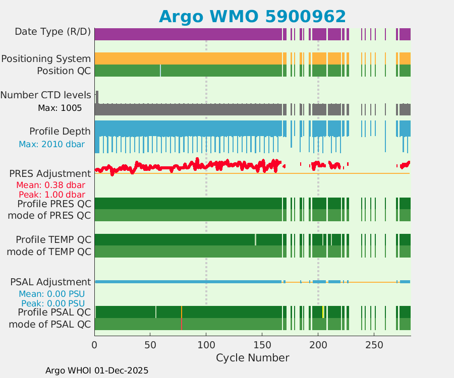 | WMO: #5901049 DAC: aoml PI: STEPHEN RISER APEX: #2123 SBE41: #2266 DRUCK_2900PSIA: #7631 SBE43I: #0148 Altimeter Comparison (IFREMER) EuroArgo Link | ![]() |