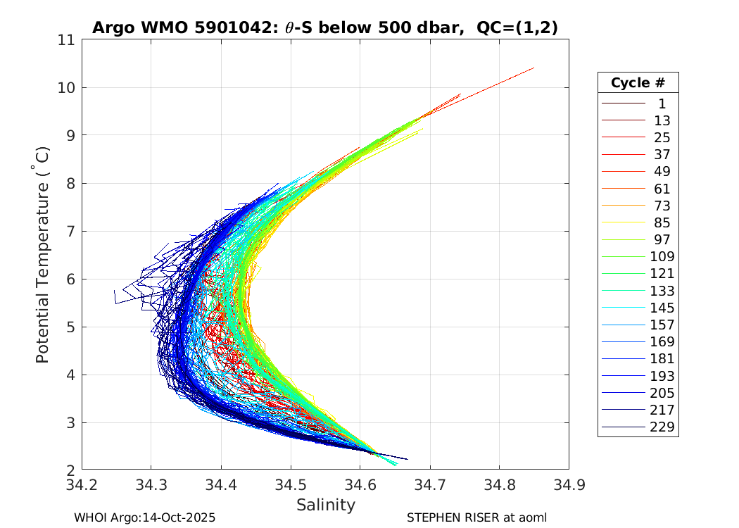 | WMO: #5901042 DAC: aoml PI: STEPHEN RISER APEX: #2120 SBE41: #2282 DRUCK_2900PSIA: #7827 SBE43I: #0116 Altimeter Comparison (IFREMER) EuroArgo Link | ![]() |