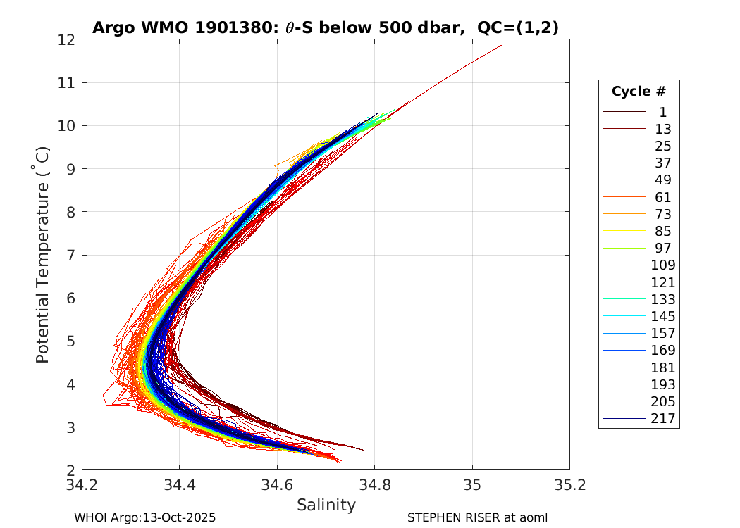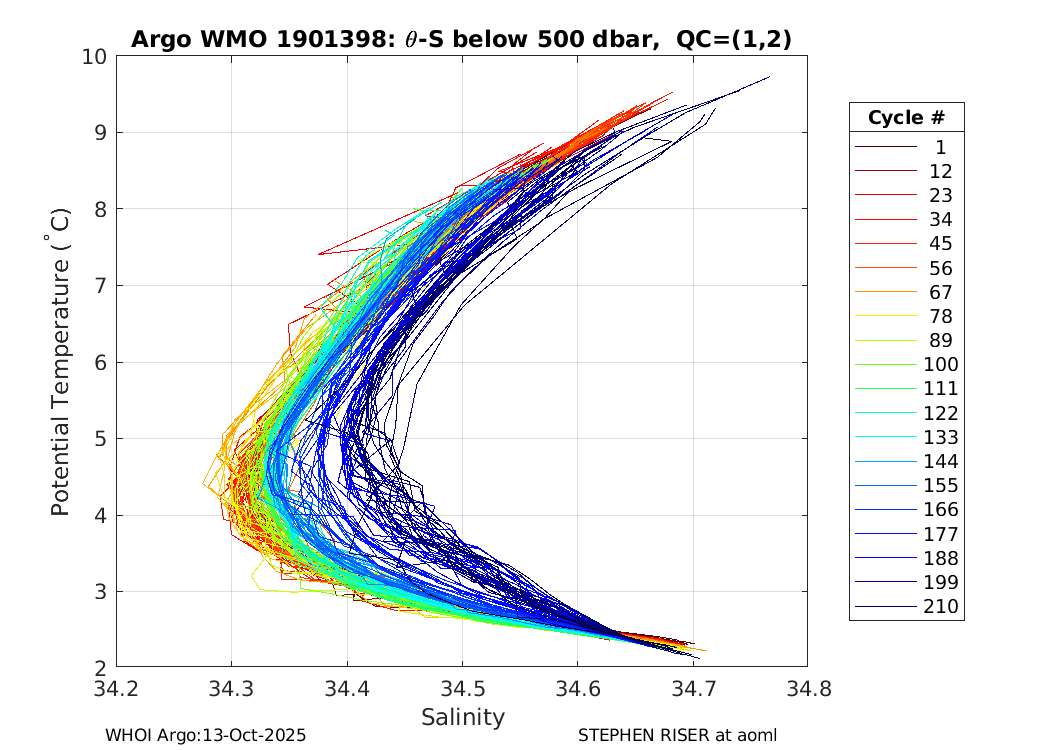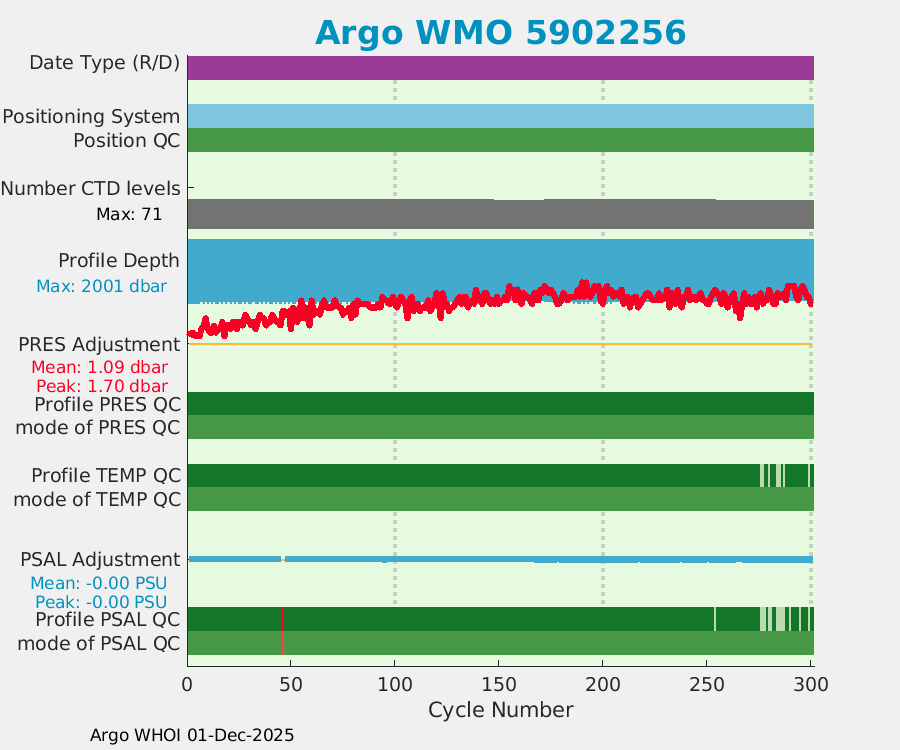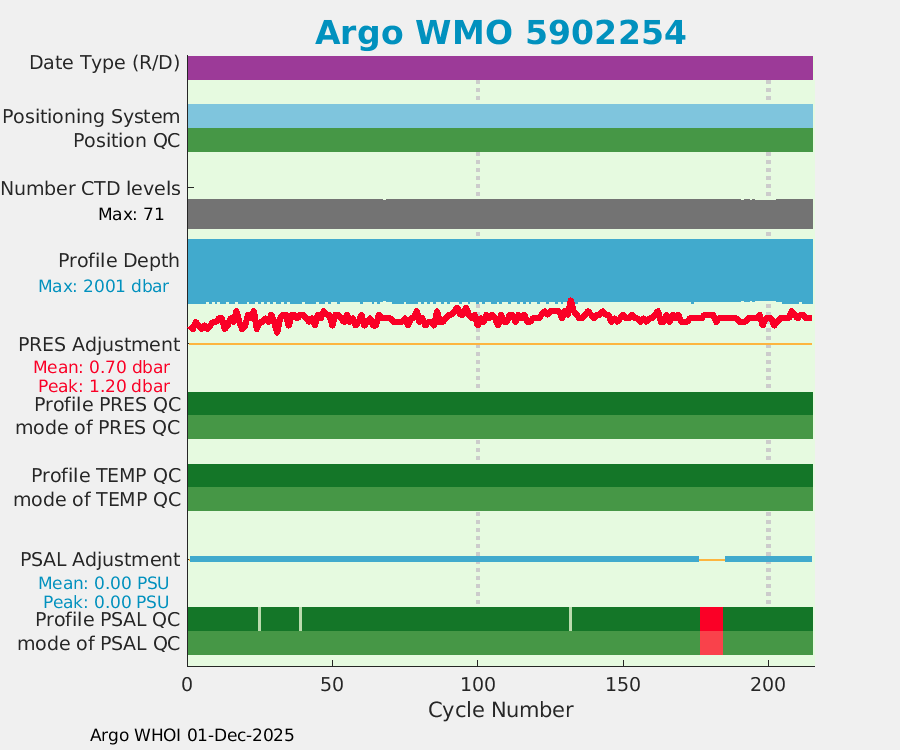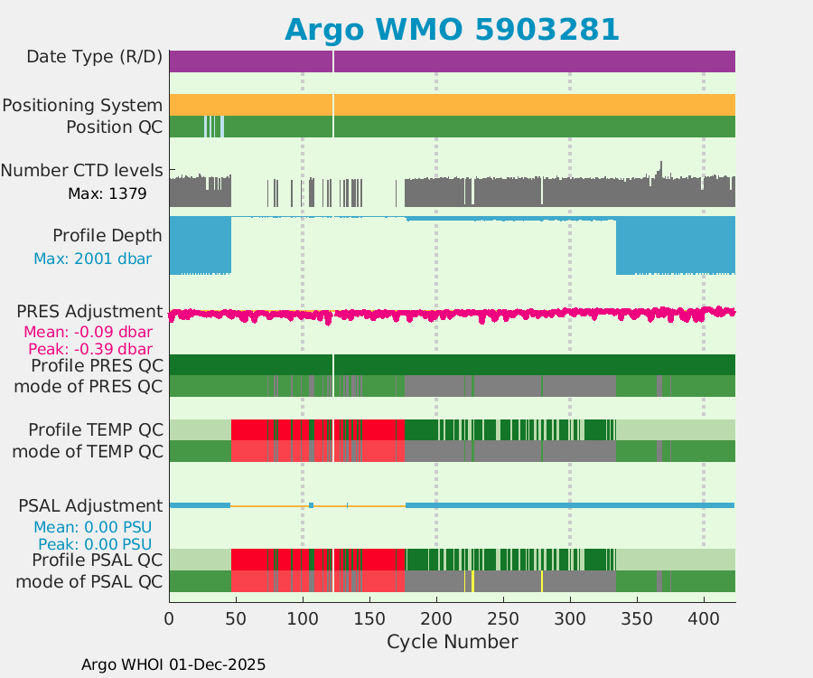 | WMO: #1901398 DAC: aoml PI: STEPHEN RISER APEX: #4379 SBE41: #4393 DRUCK_2900PSIA: #2832848 Altimeter Comparison (IFREMER) EuroArgo Link | ![]() |