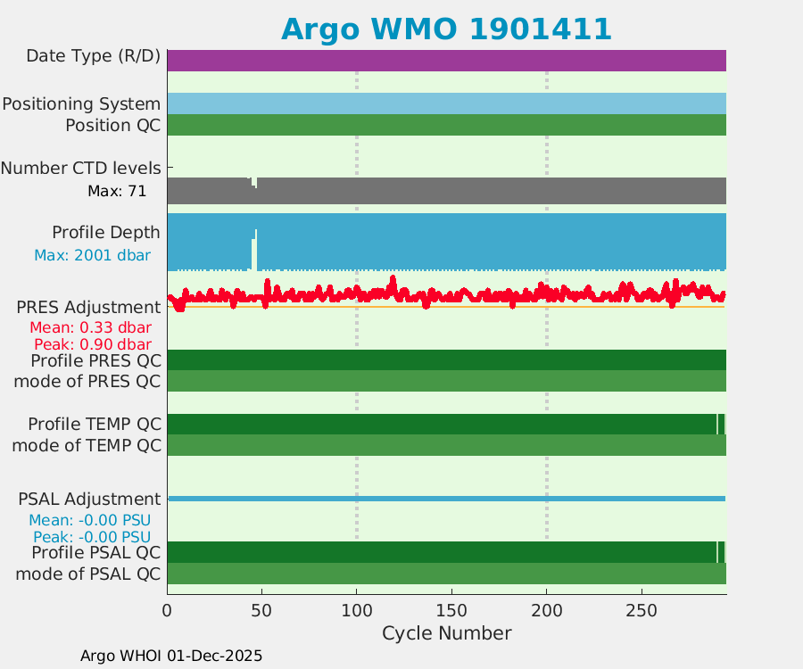 | WMO: #1901411 DAC: aoml PI: STEPHEN RISER APEX: #4442 SBE41: #4474 DRUCK_2900PSIA: #2930759 Altimeter Comparison (IFREMER) EuroArgo Link | ![]() |