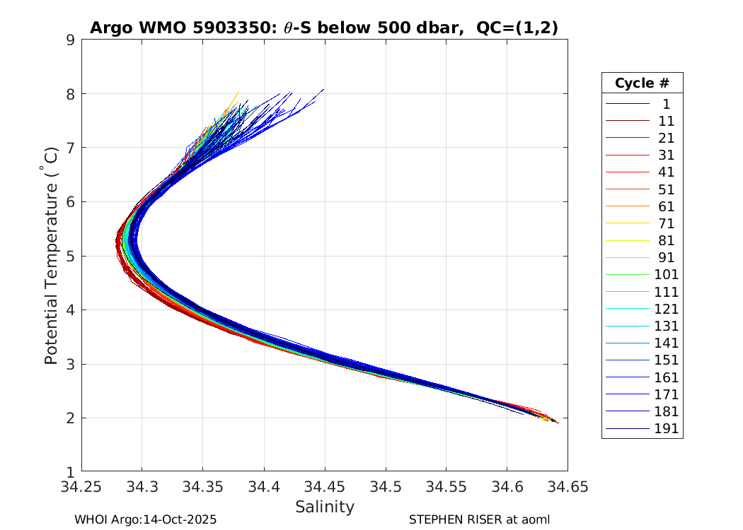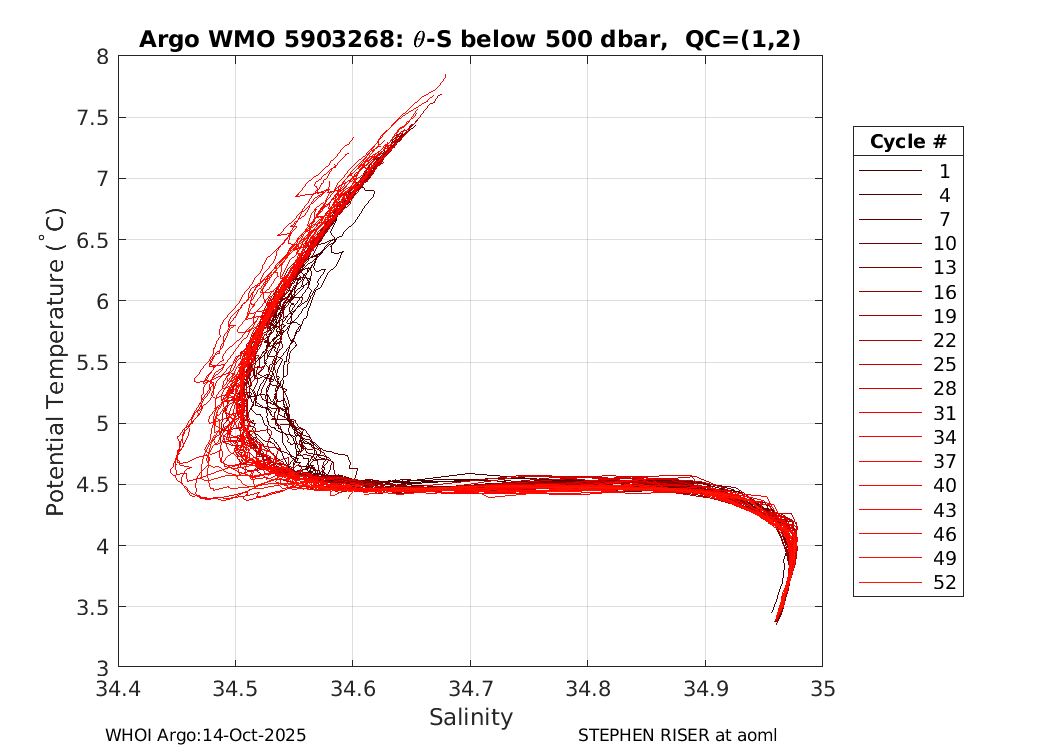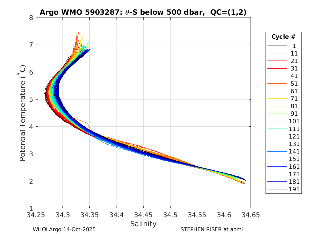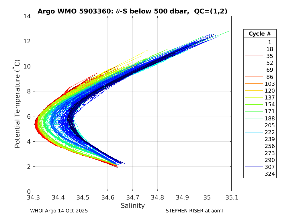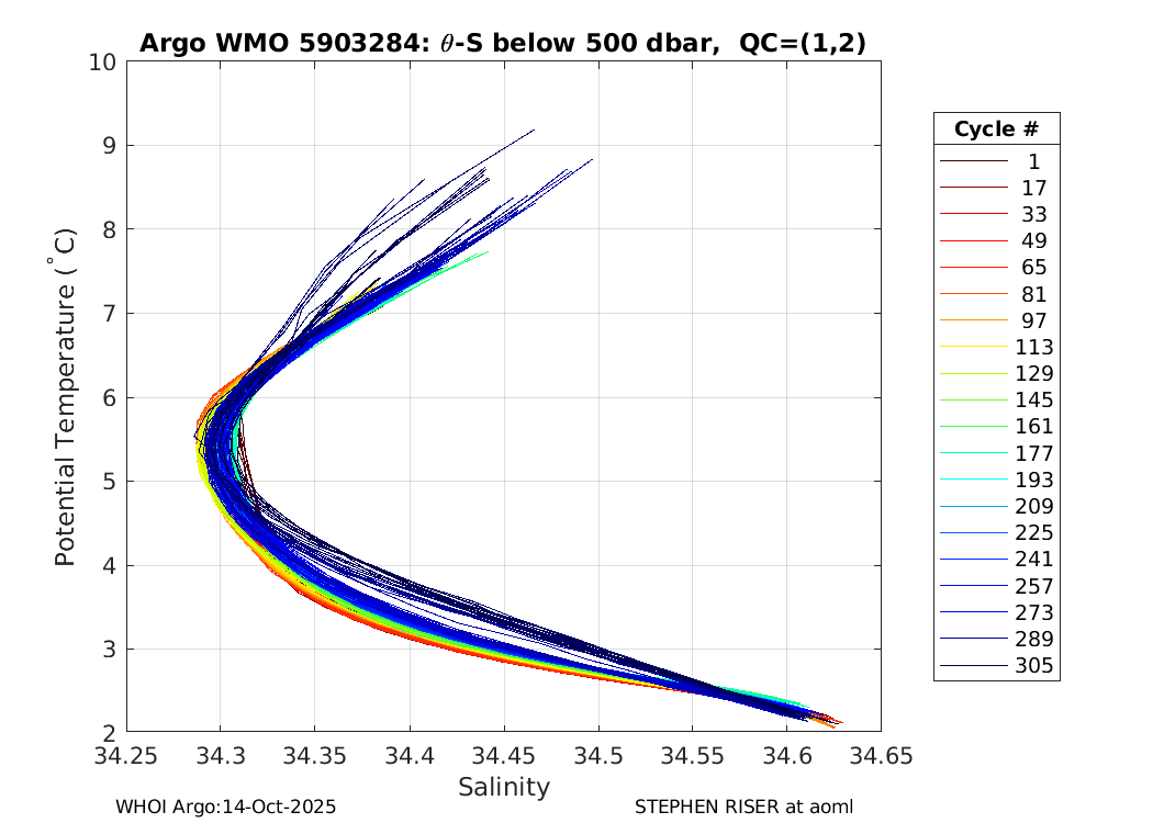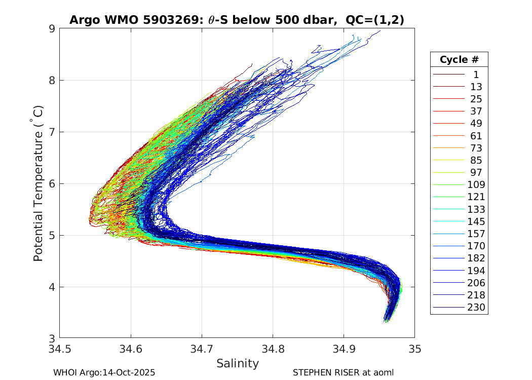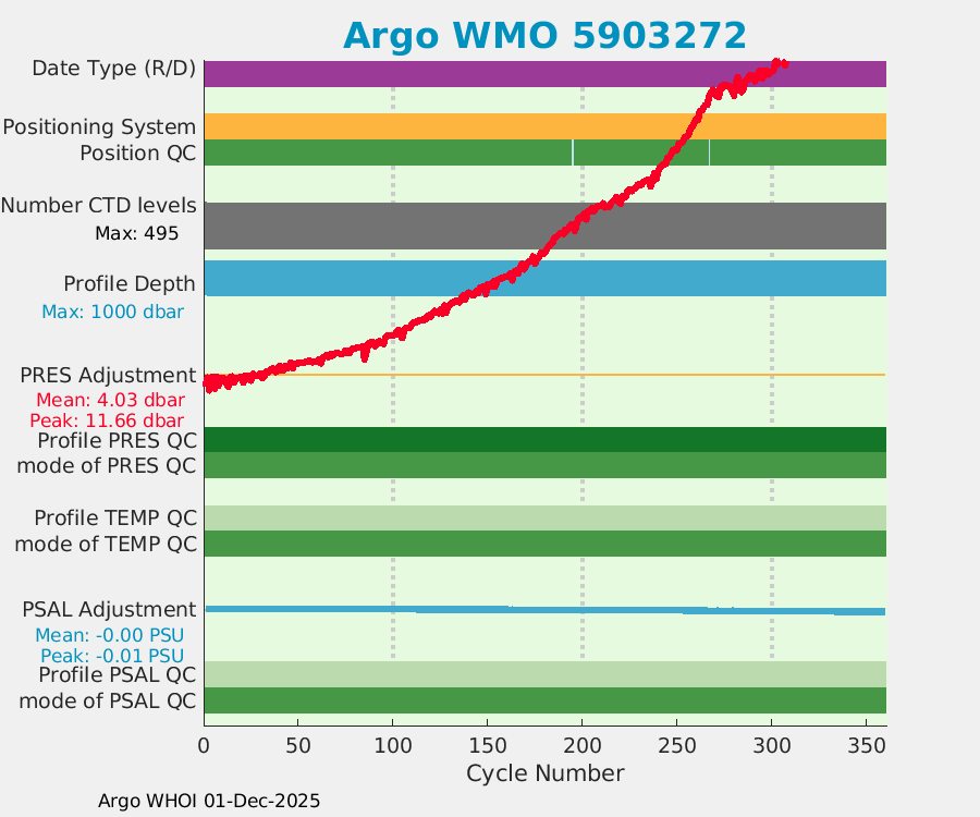 | WMO: #5903269 DAC: aoml PI: STEPHEN RISER APEX: #4854 SBE41CP: #2391 SBE_STS: #2391 DRUCK_2900PSIA: #2724732 Altimeter Comparison (IFREMER) EuroArgo Link | ![]() |
