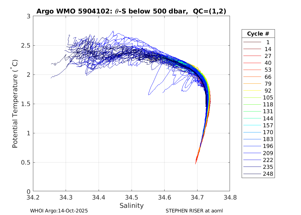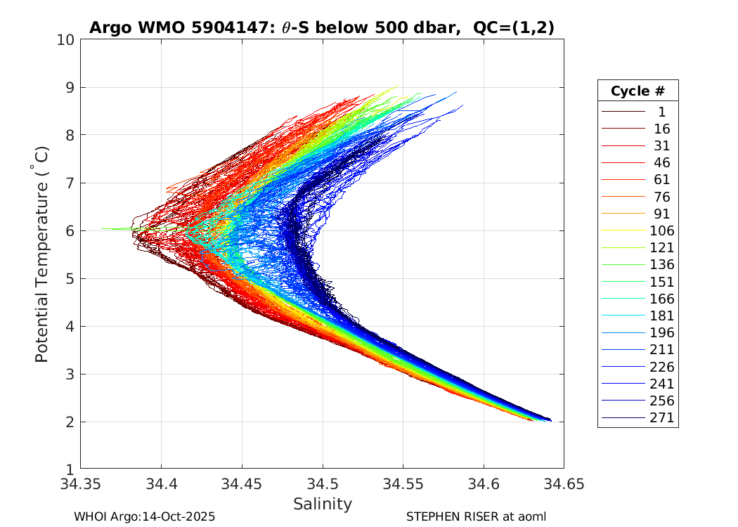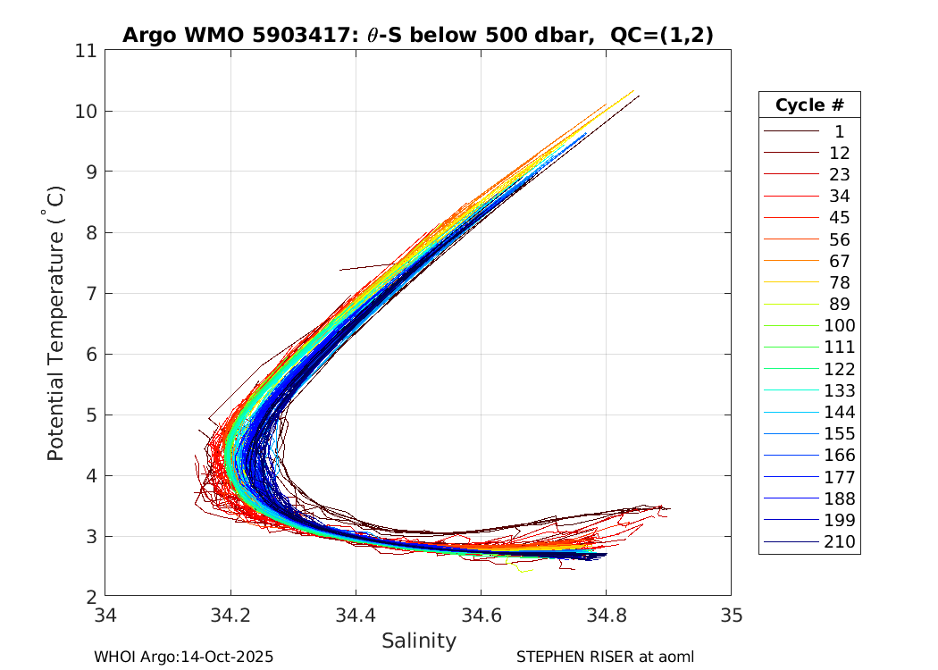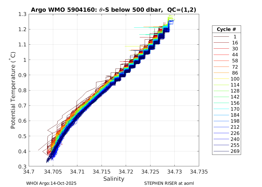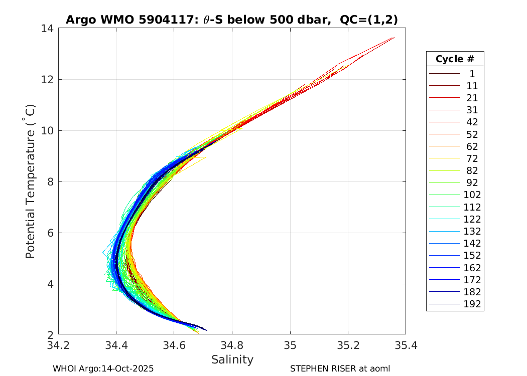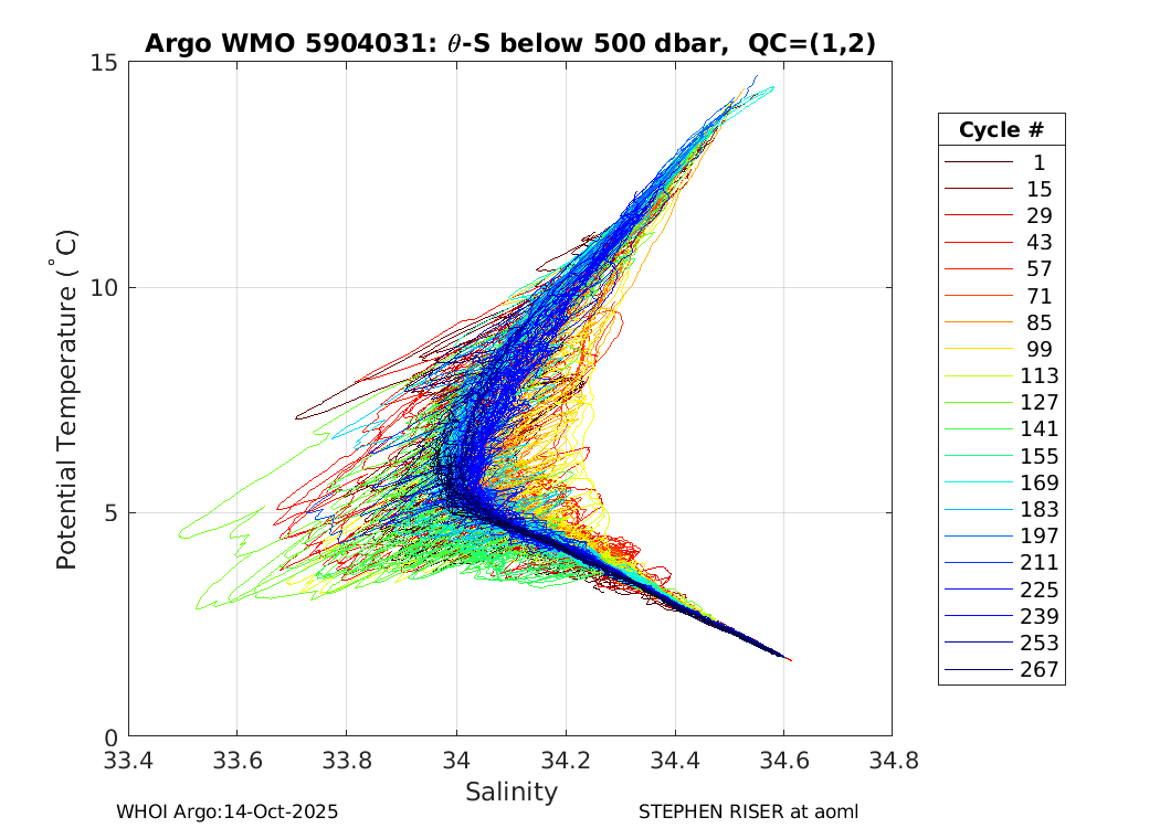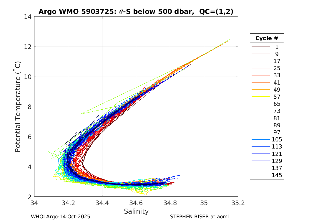 | WMO: #5903994 DAC: aoml PI: STEPHEN RISER APEX: #5586 SBE41CP: #3557 SBE_STS: #3557 DRUCK_2900PSIA: #3216397 Altimeter Comparison (IFREMER) EuroArgo Link | ![]() |