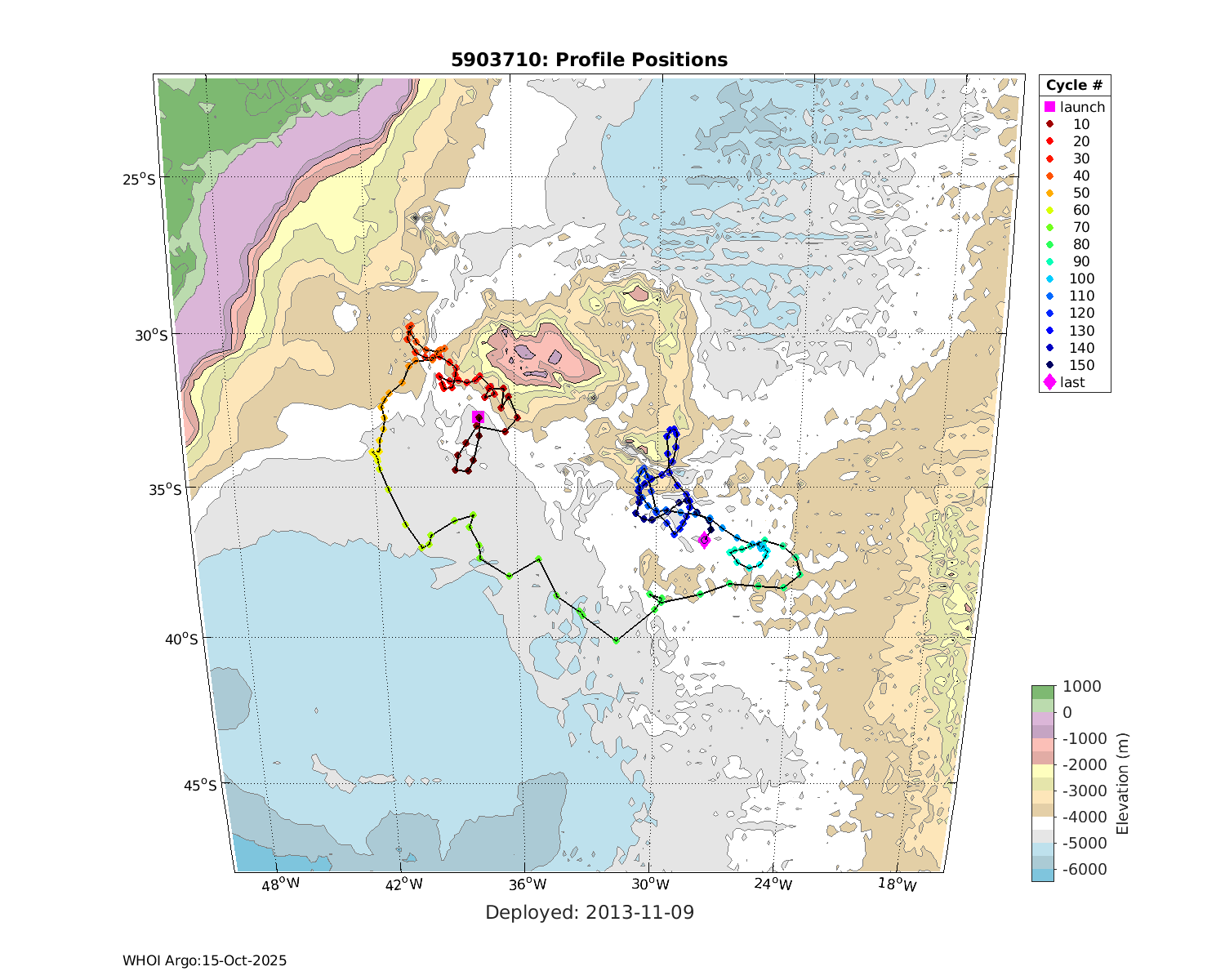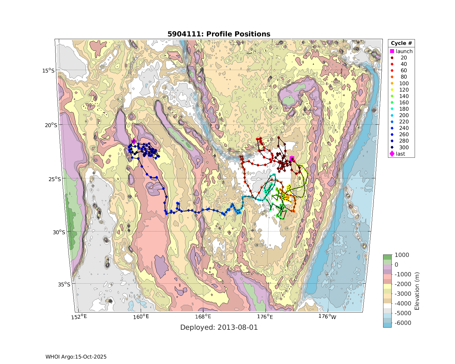 | WMO: #5904026 DAC: aoml PI: STEPHEN RISER APEX: #6175 SBE41CP: #4147 DRUCK_2900PSIA: #3401939 AANDERAA_OPTODE_4330: #0941 AANDERAA_OPTODE_4330: #0938 Altimeter Comparison (IFREMER) EuroArgo Link | ![]() |