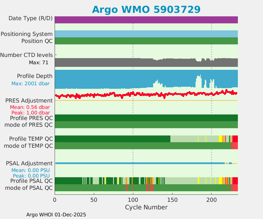 | WMO: #5903710 DAC: aoml PI: STEPHEN RISER APEX: #6443 SBE41: #6003 DRUCK_2900PSIA: #3475152 Altimeter Comparison (IFREMER) EuroArgo Link | ![]() |