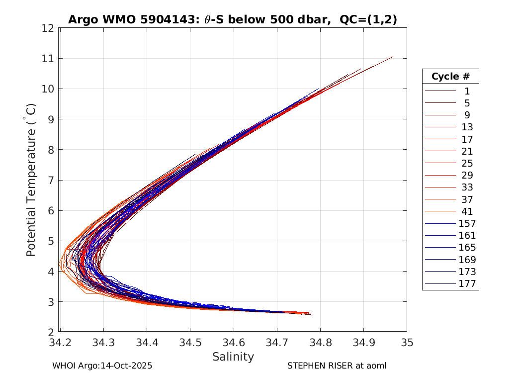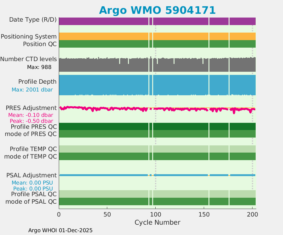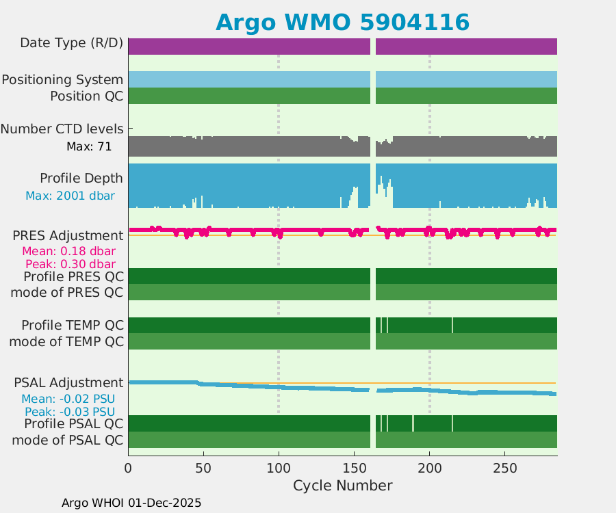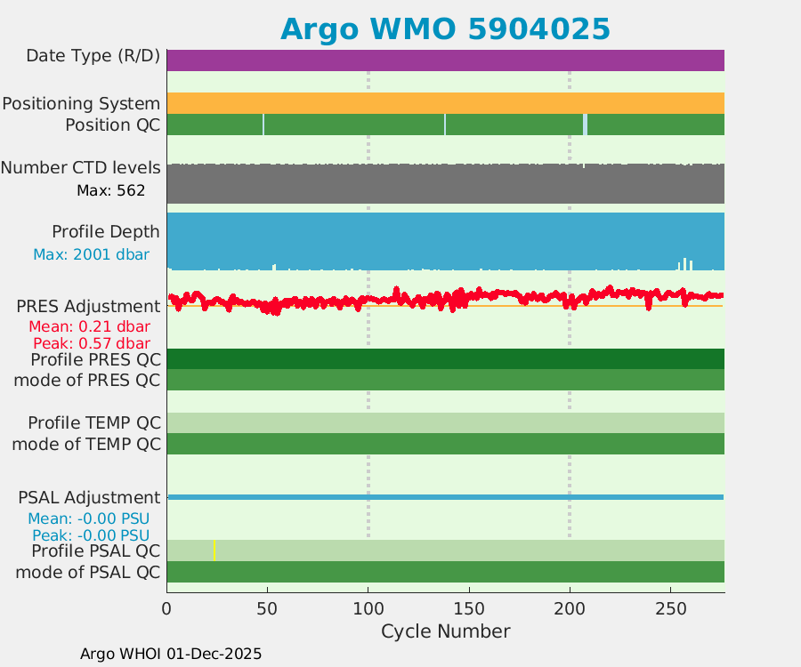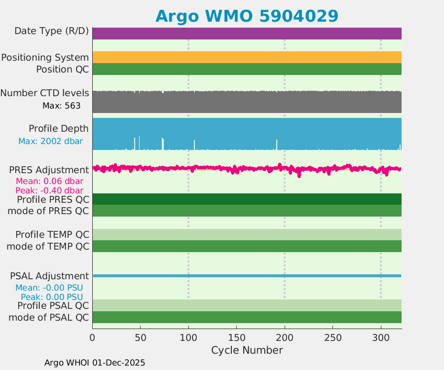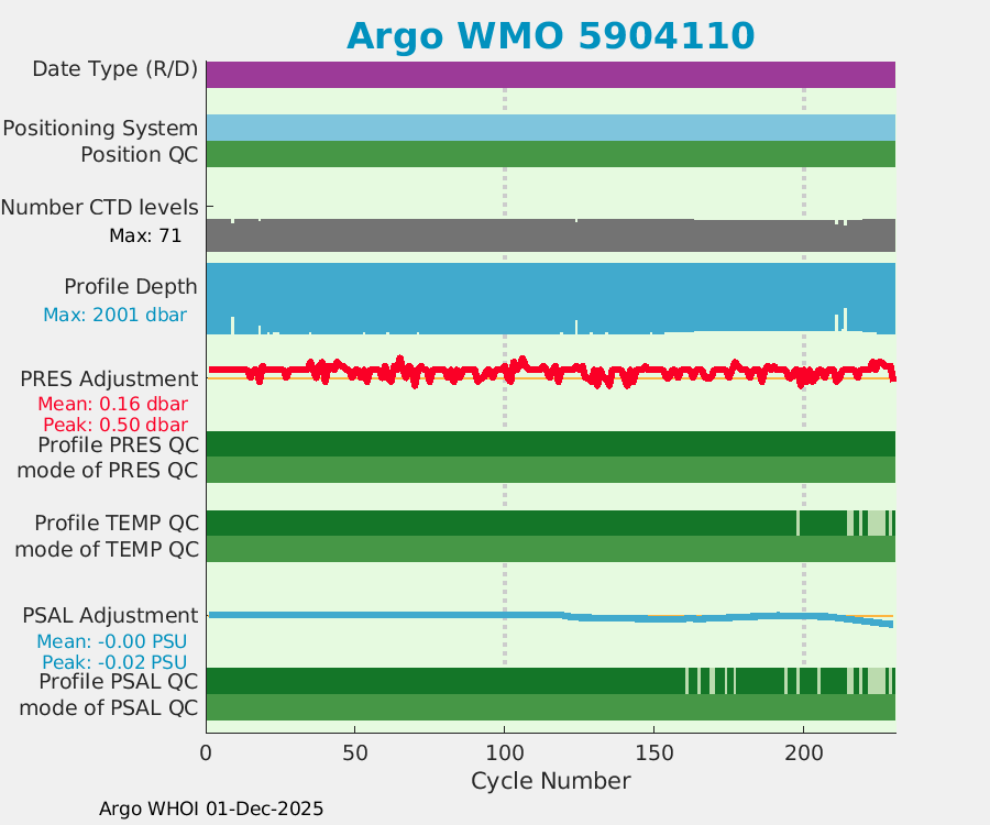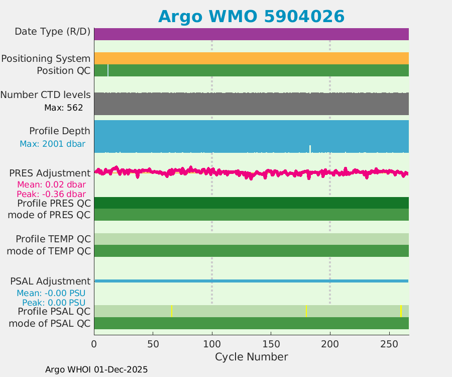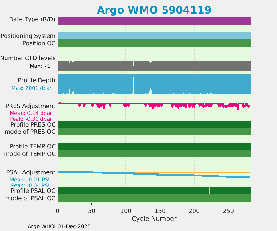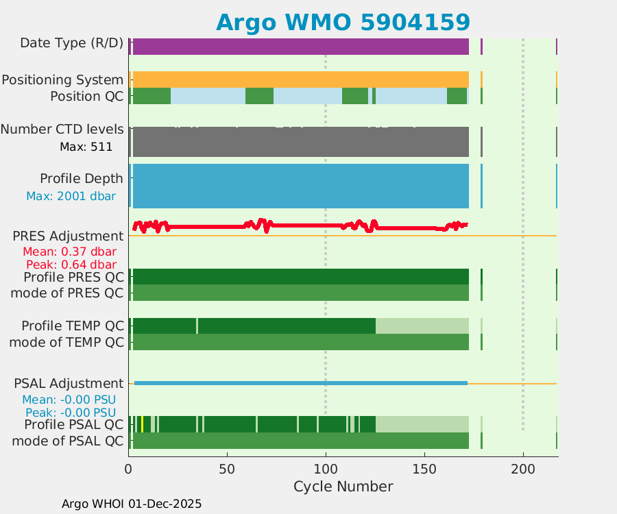 | WMO: #5904114 DAC: aoml PI: STEPHEN RISER APEX: #6414 SBE41: #5971 DRUCK_2900PSIA: #3469286 Altimeter Comparison (IFREMER) EuroArgo Link | ![]() |
