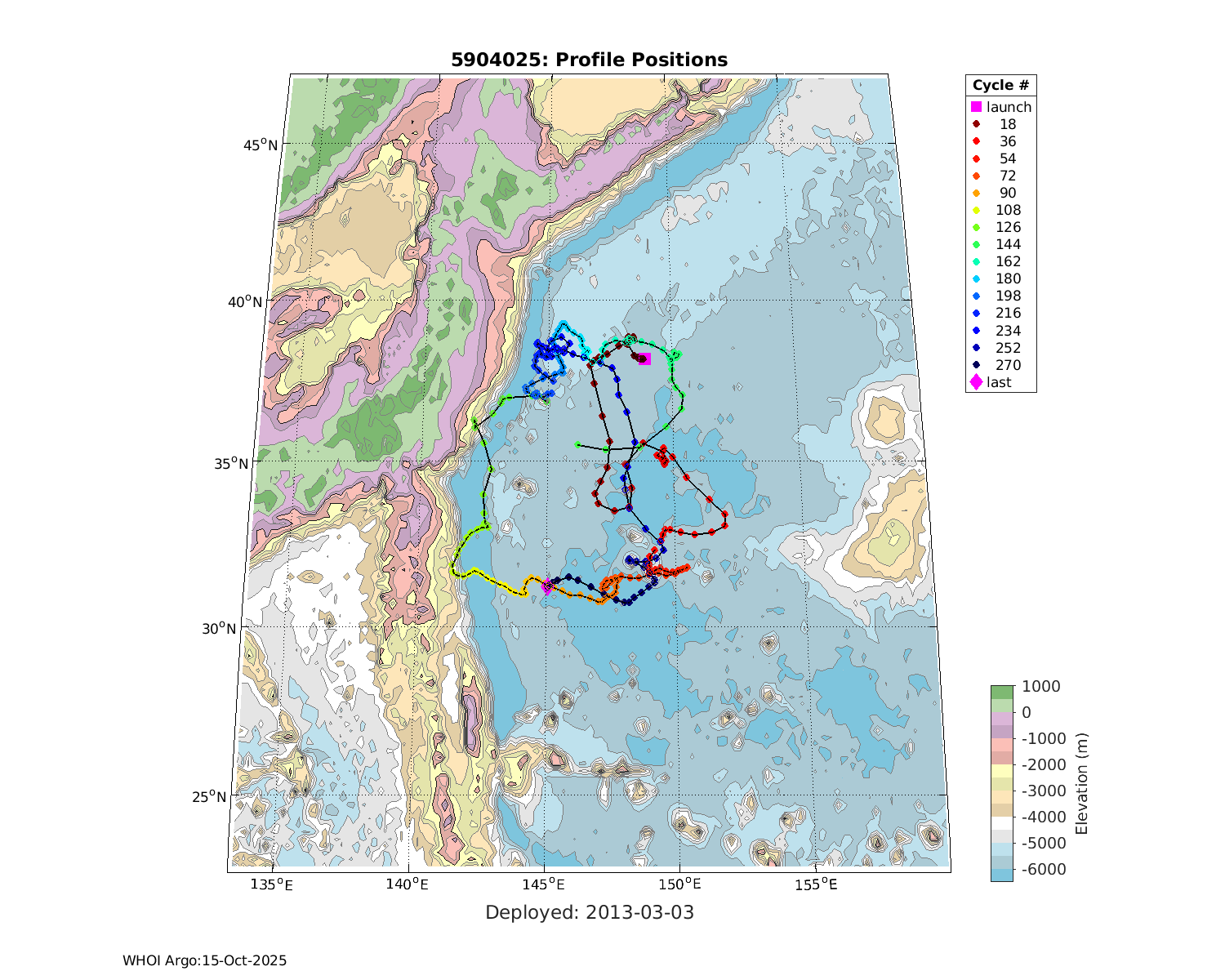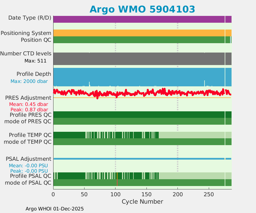 | WMO: #5904027 DAC: aoml PI: STEPHEN RISER APEX: #6173 SBE41CP: #4155 DRUCK_2900PSIA: #3400811 AANDERAA_OPTODE_4330: #0897 AANDERAA_OPTODE_4330: #0863 Altimeter Comparison (IFREMER) EuroArgo Link | ![]() |