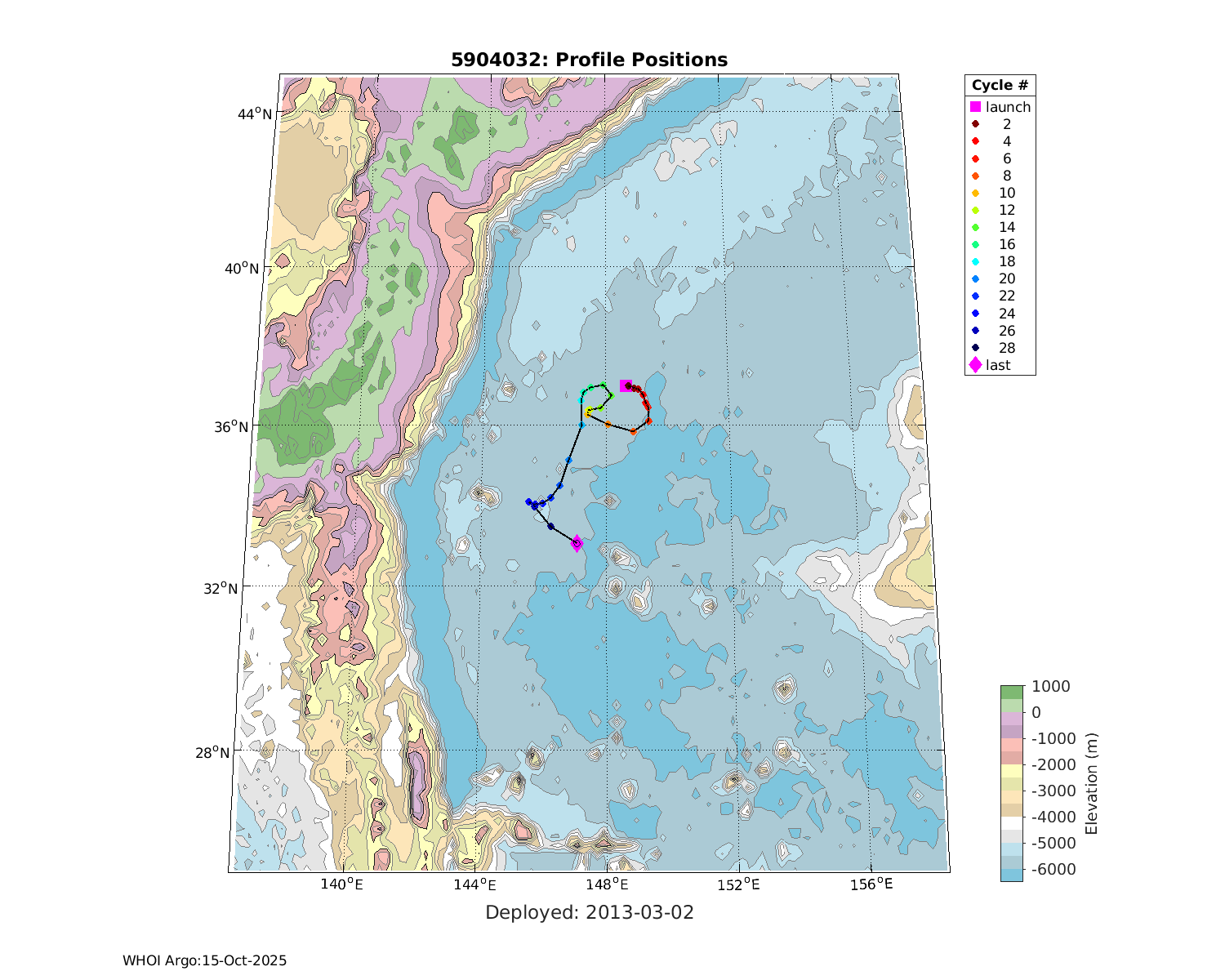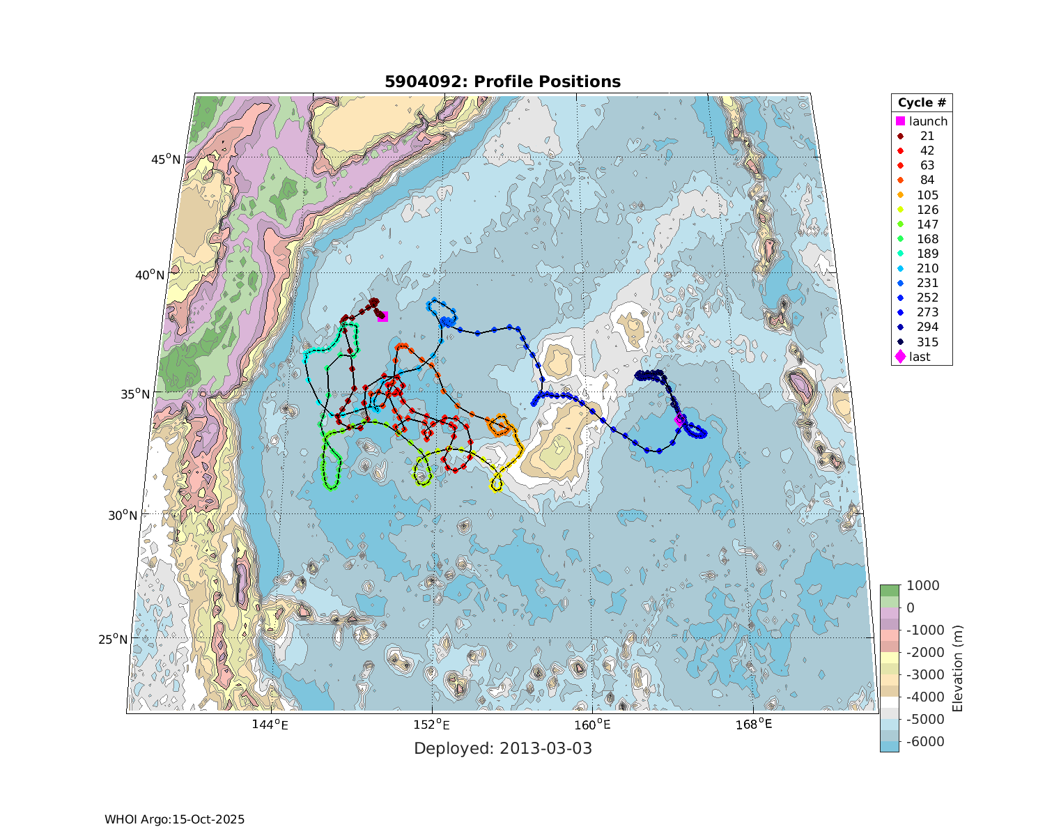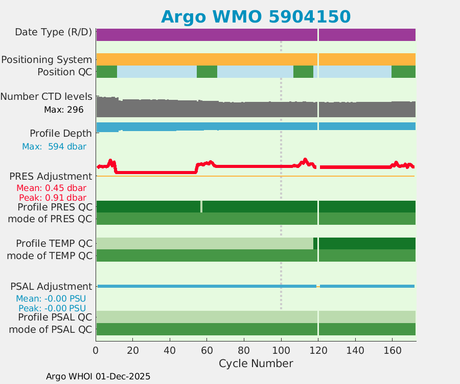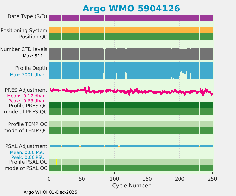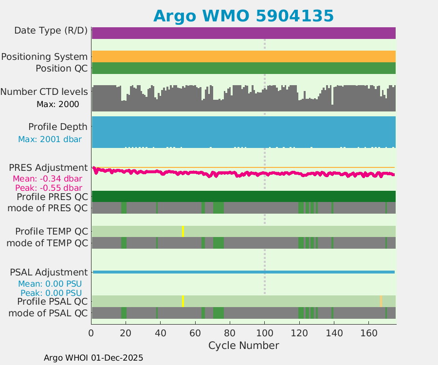 | WMO: #5904126 DAC: aoml PI: STEPHEN RISER APEX: #6181 SBE41CP: #3490 DRUCK_2900PSIA: #3188357 SBE63_OPTODE: #0229 Altimeter Comparison (IFREMER) EuroArgo Link | ![]() |