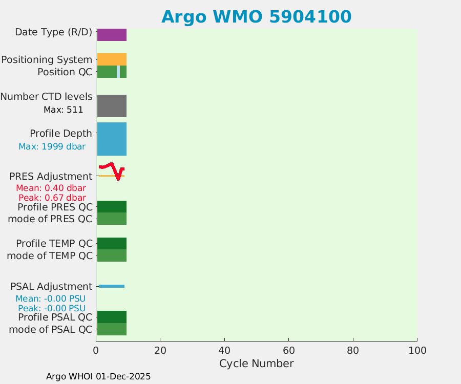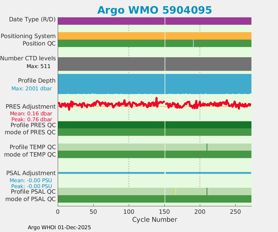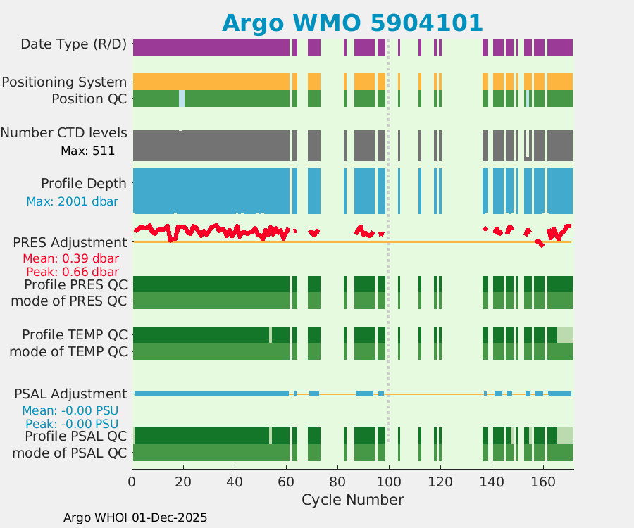 | WMO: #5904101 DAC: aoml PI: STEPHEN RISER APEX: #6271 SBE41CP: #4195 DRUCK_2900PSIA: #3464315 Altimeter Comparison (IFREMER) EuroArgo Link | ![]() |