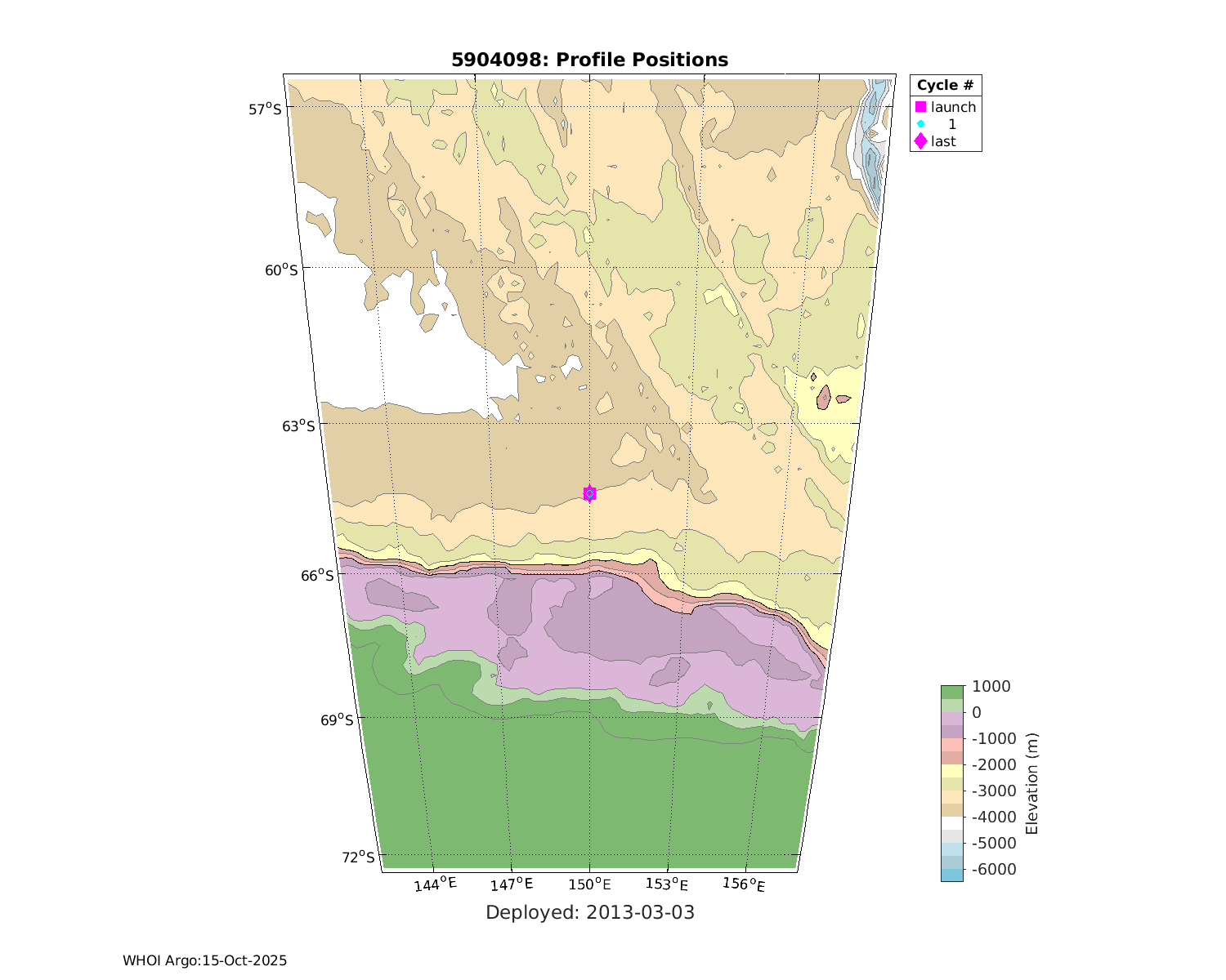 | WMO: #5904098 DAC: aoml PI: STEPHEN RISER APEX: #6274 SBE41CP: #4192 DRUCK_2900PSIA: #3464316 Altimeter Comparison (IFREMER) EuroArgo Link | n/a | n/a | ![]() |
