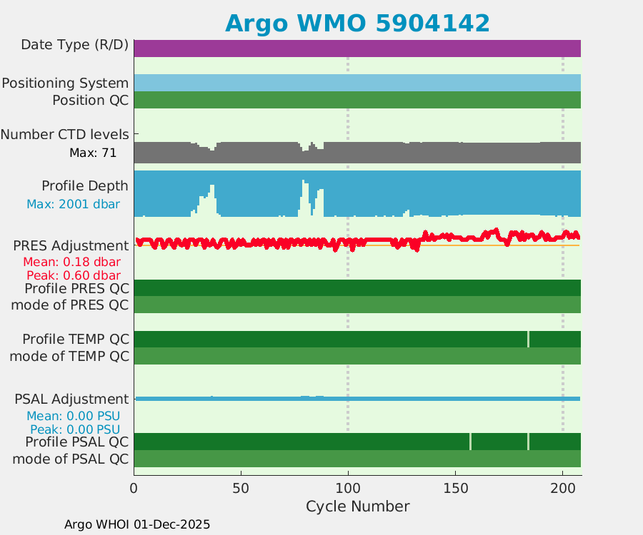 | WMO: #5904154 DAC: aoml PI: STEPHEN RISER APEX: #6464 SBE41CP: #4080 DRUCK_2900PSIA: #3469202 Altimeter Comparison (IFREMER) EuroArgo Link | ![]() |