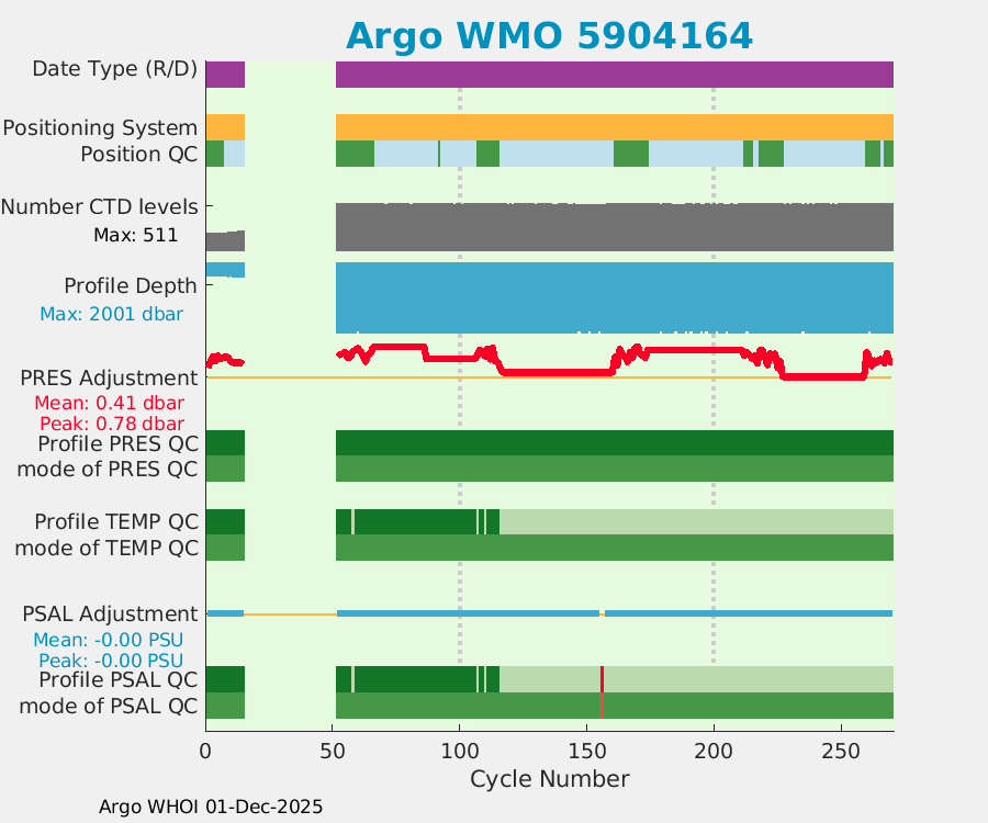 | WMO: #5904164 DAC: aoml PI: STEPHEN RISER APEX: #6476 SBE41CP: #4073 DRUCK_2900PSIA: #3459093 Altimeter Comparison (IFREMER) EuroArgo Link | ![]() |