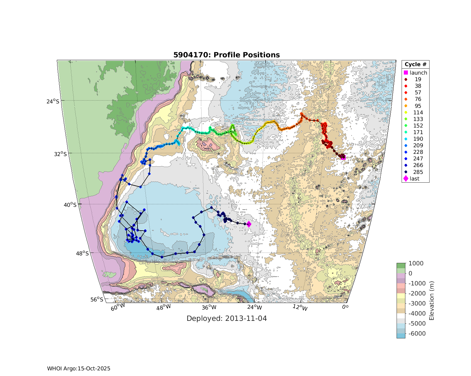 | WMO: #5904025 DAC: aoml PI: STEPHEN RISER APEX: #6172 SBE41CP: #4154 DRUCK_2900PSIA: #3404764 AANDERAA_OPTODE_4330: #0890 AANDERAA_OPTODE_4330: #0891 Altimeter Comparison (IFREMER) EuroArgo Link | ![]() |