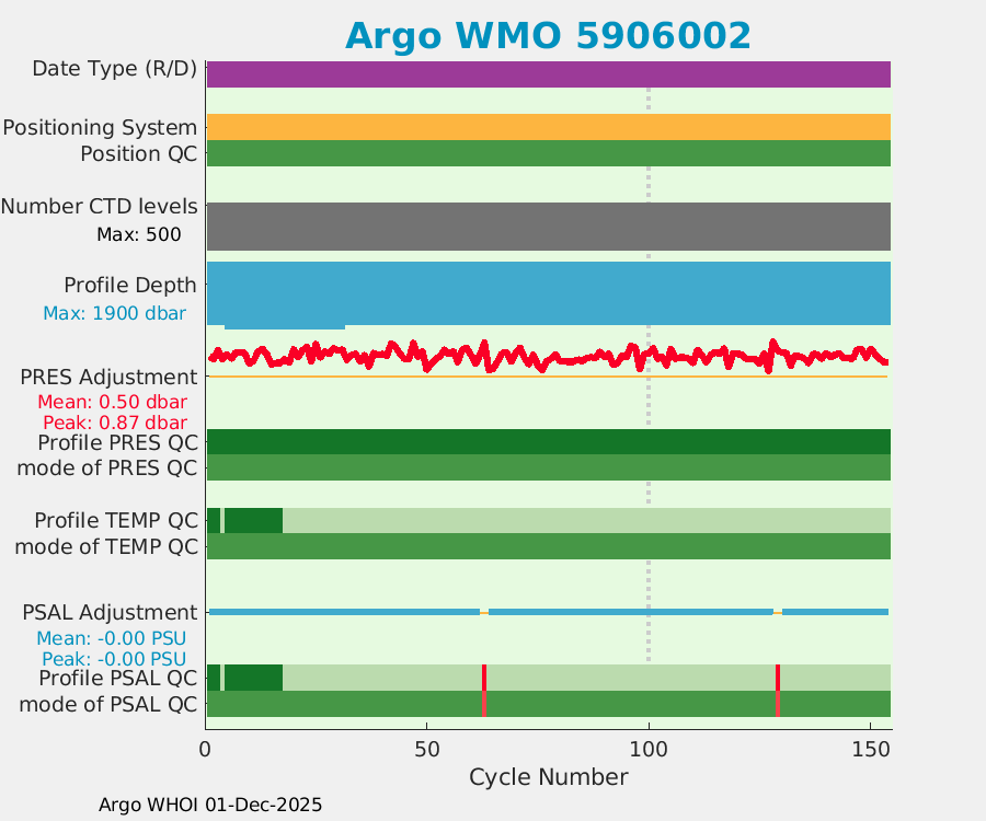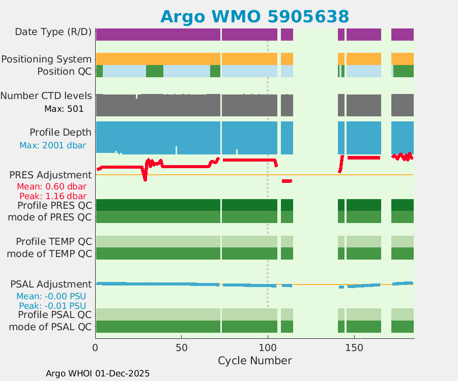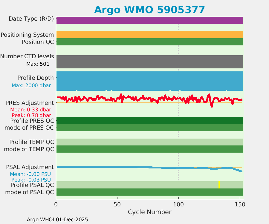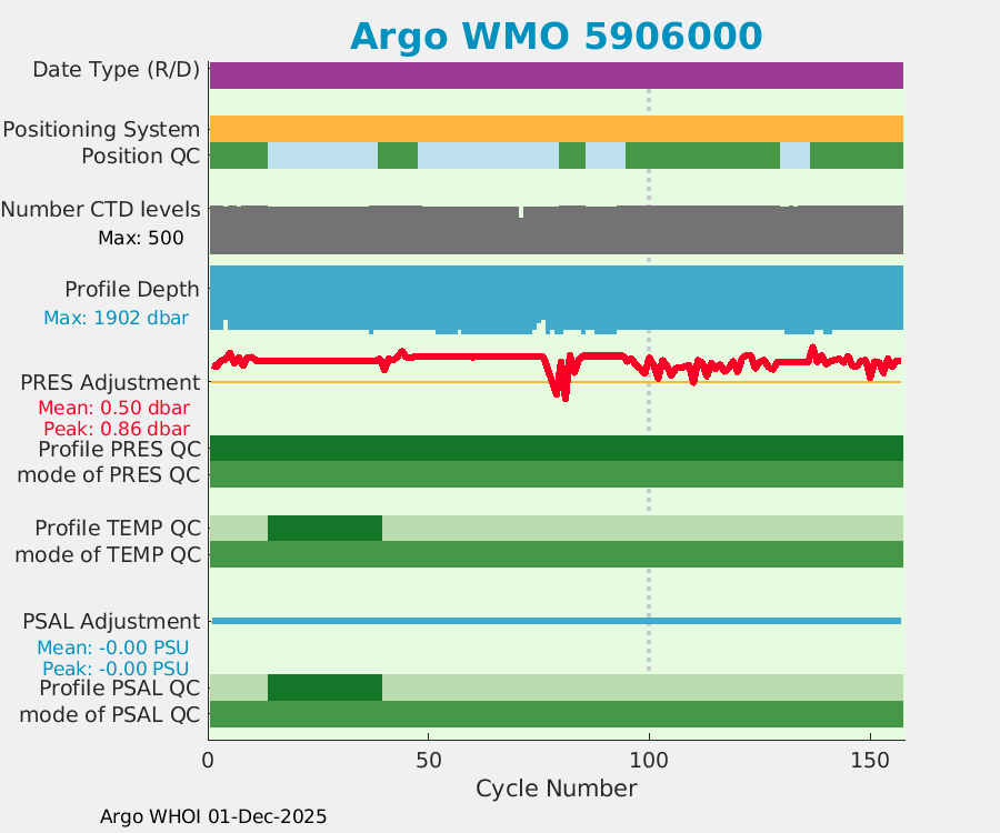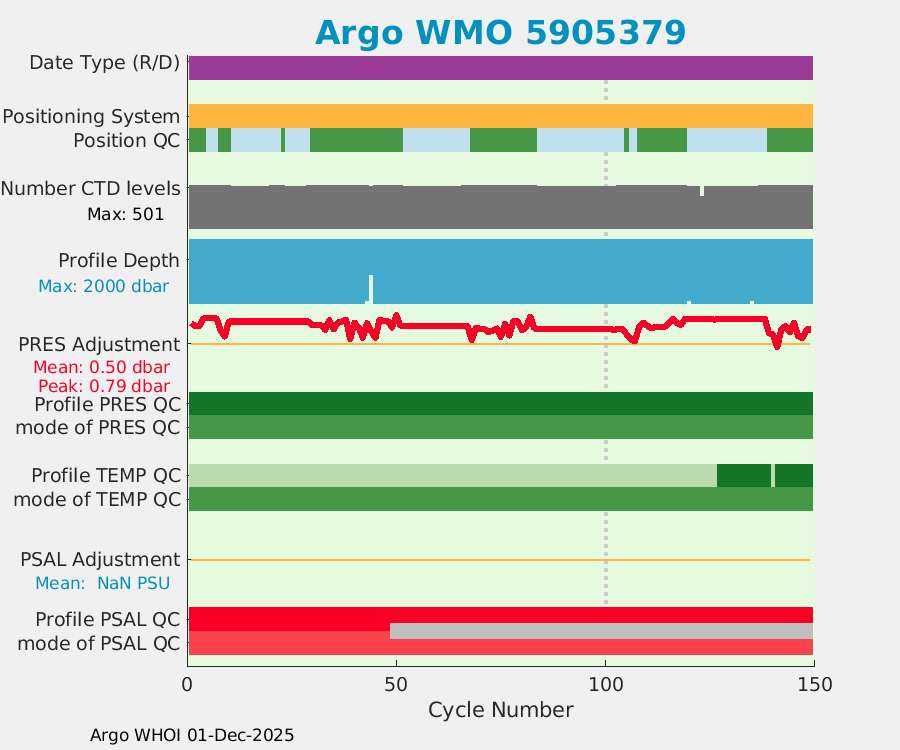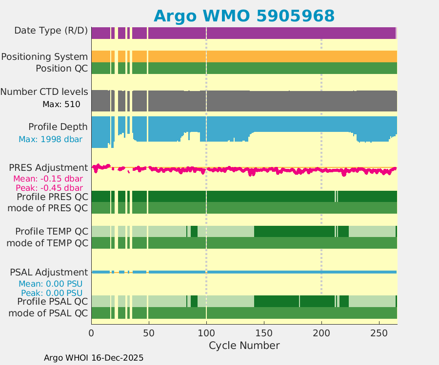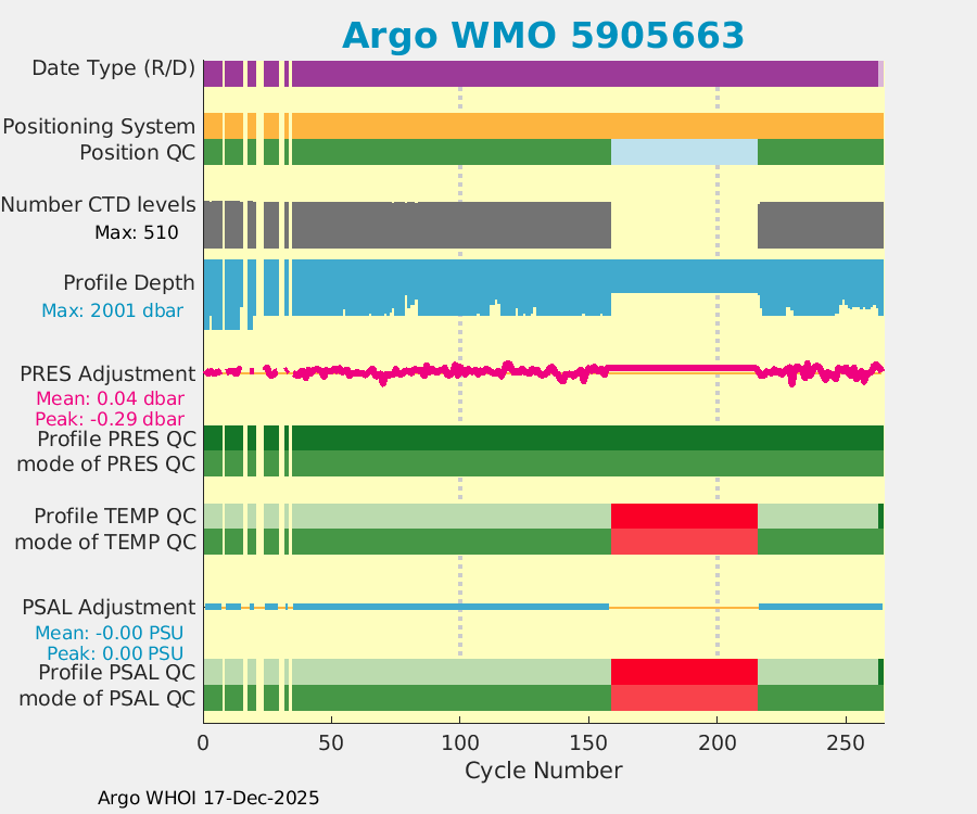 | WMO: #5905643 DAC: aoml PI: STEPHEN RISER APEX: #8277 SBE41CP: #9493 DRUCK_2900PSIA: #10444143 Altimeter Comparison (IFREMER) EuroArgo Link | ![]() |