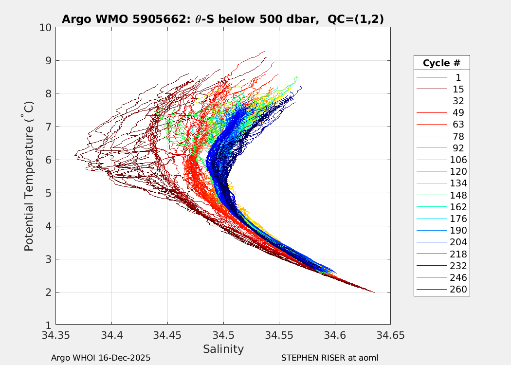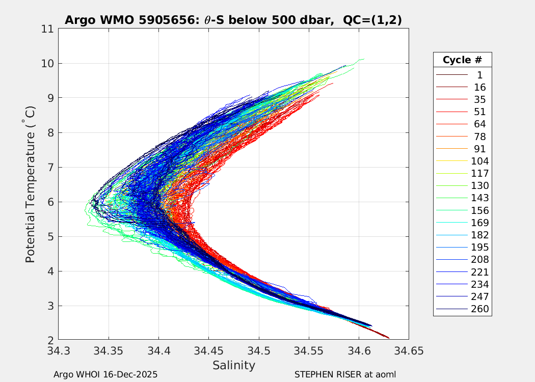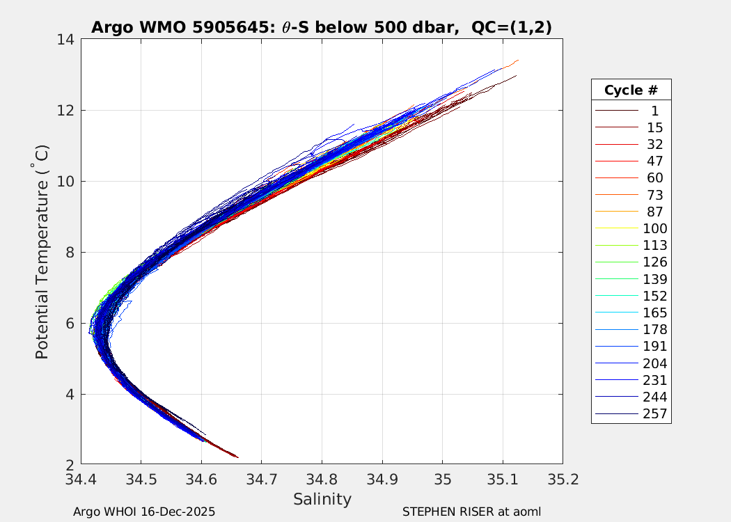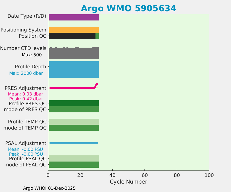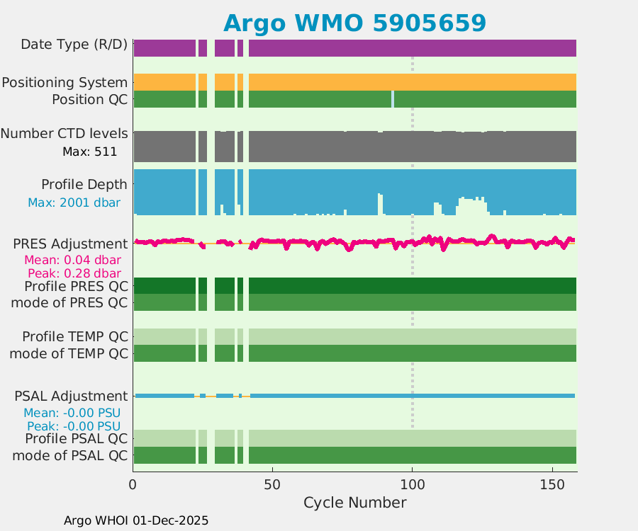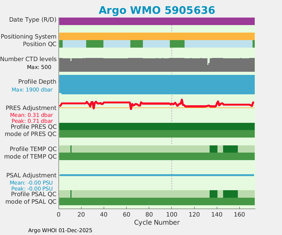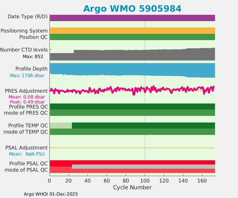 | WMO: #5905643 DAC: aoml PI: STEPHEN RISER APEX: #8277 SBE41CP: #9493 DRUCK_2900PSIA: #10444143 Altimeter Comparison (IFREMER) EuroArgo Link | ![]() |