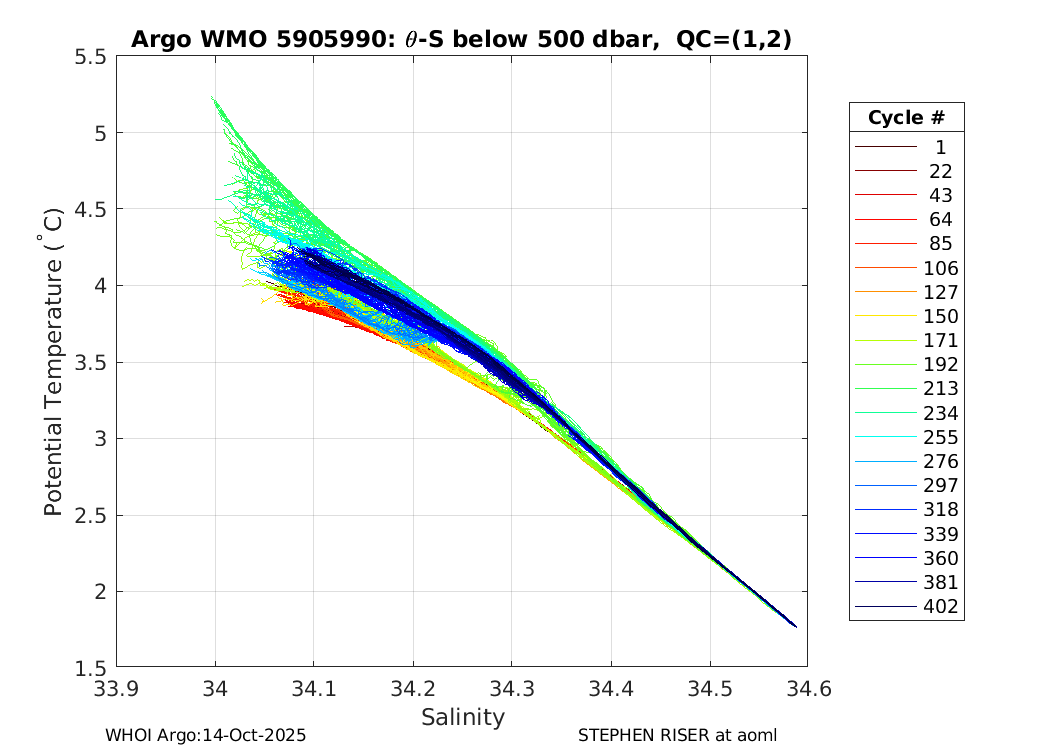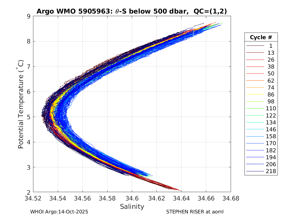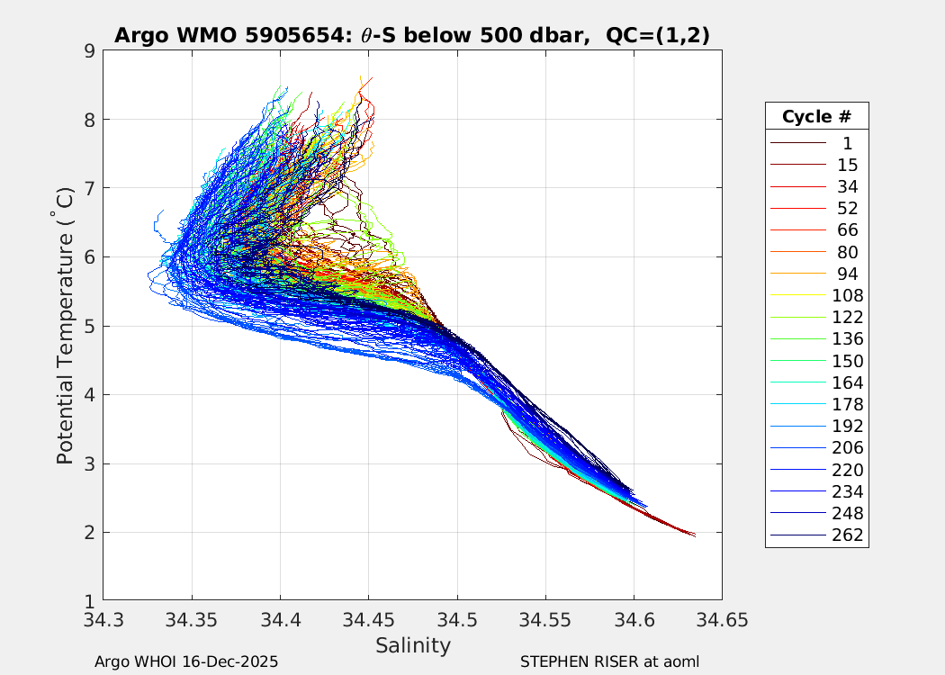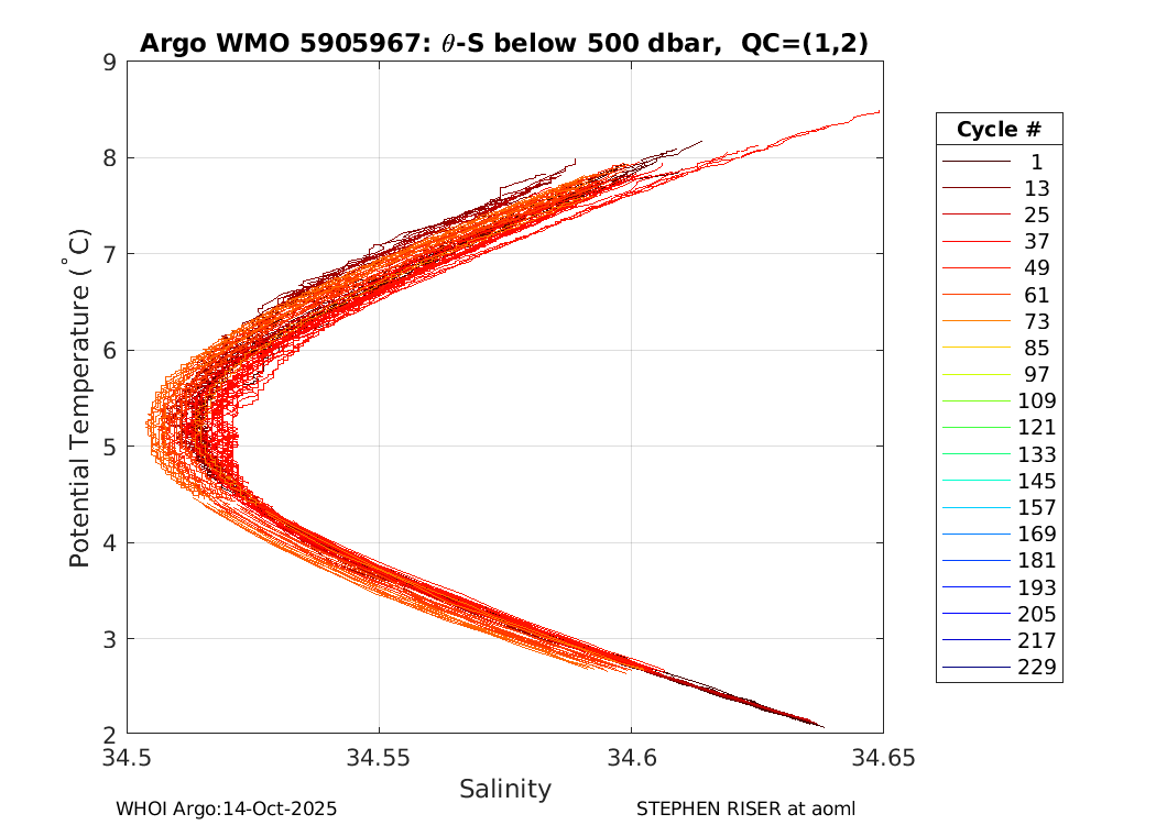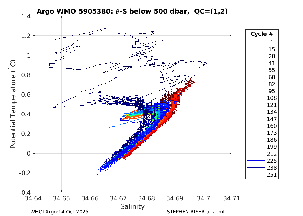 | WMO: #5905657 DAC: aoml PI: STEPHEN RISER APEX: #8243 SBE41CP: #8479 DRUCK_2900PSIA: #10597258 Altimeter Comparison (IFREMER) EuroArgo Link | ![]() |