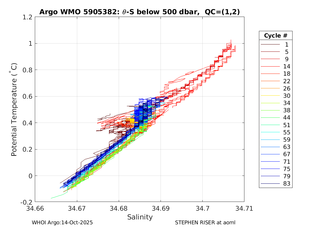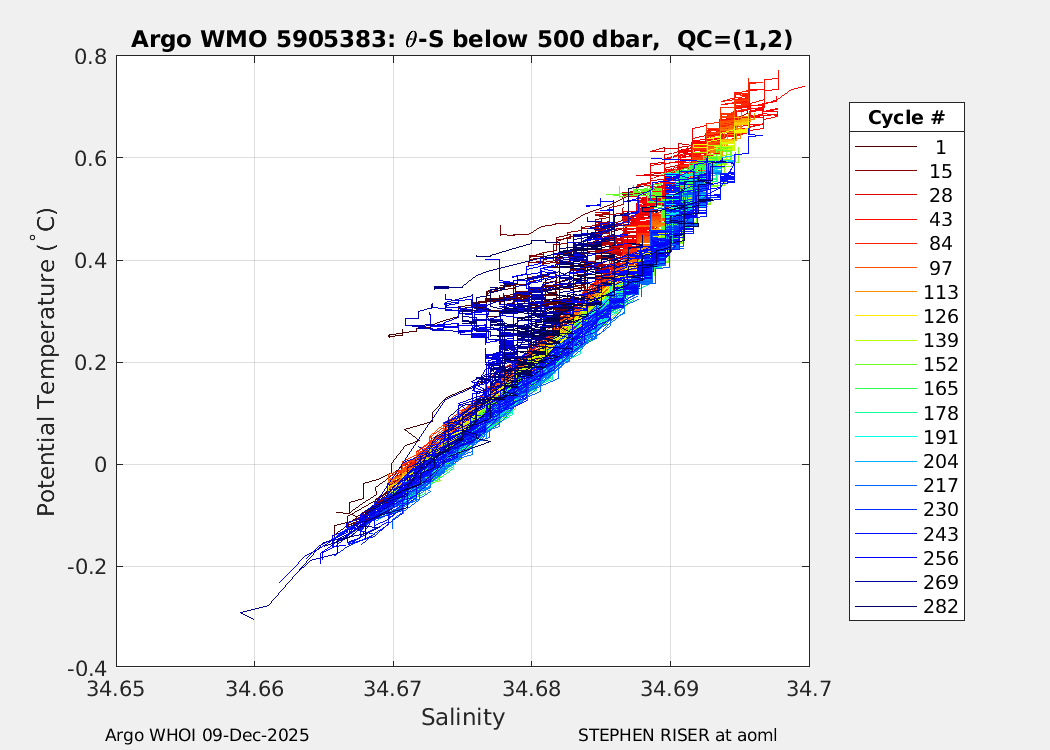 | WMO: #5905644 DAC: aoml PI: STEPHEN RISER APEX: #8285 SBE41CP: #9787 DRUCK_2900PSIA: #10651110 Altimeter Comparison (IFREMER) EuroArgo Link | ![]() |