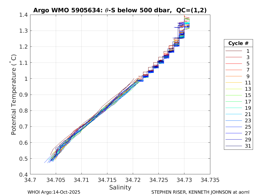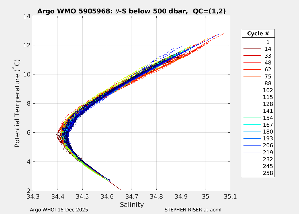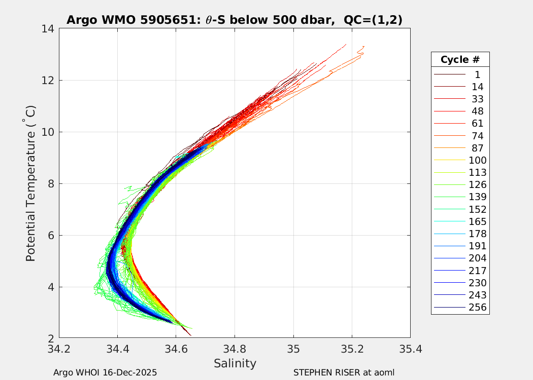 | WMO: #5905663 DAC: aoml PI: STEPHEN RISER APEX: #8272 SBE41CP: #9410 DRUCK_2900PSIA: #10445720 Altimeter Comparison (IFREMER) EuroArgo Link | ![]() |